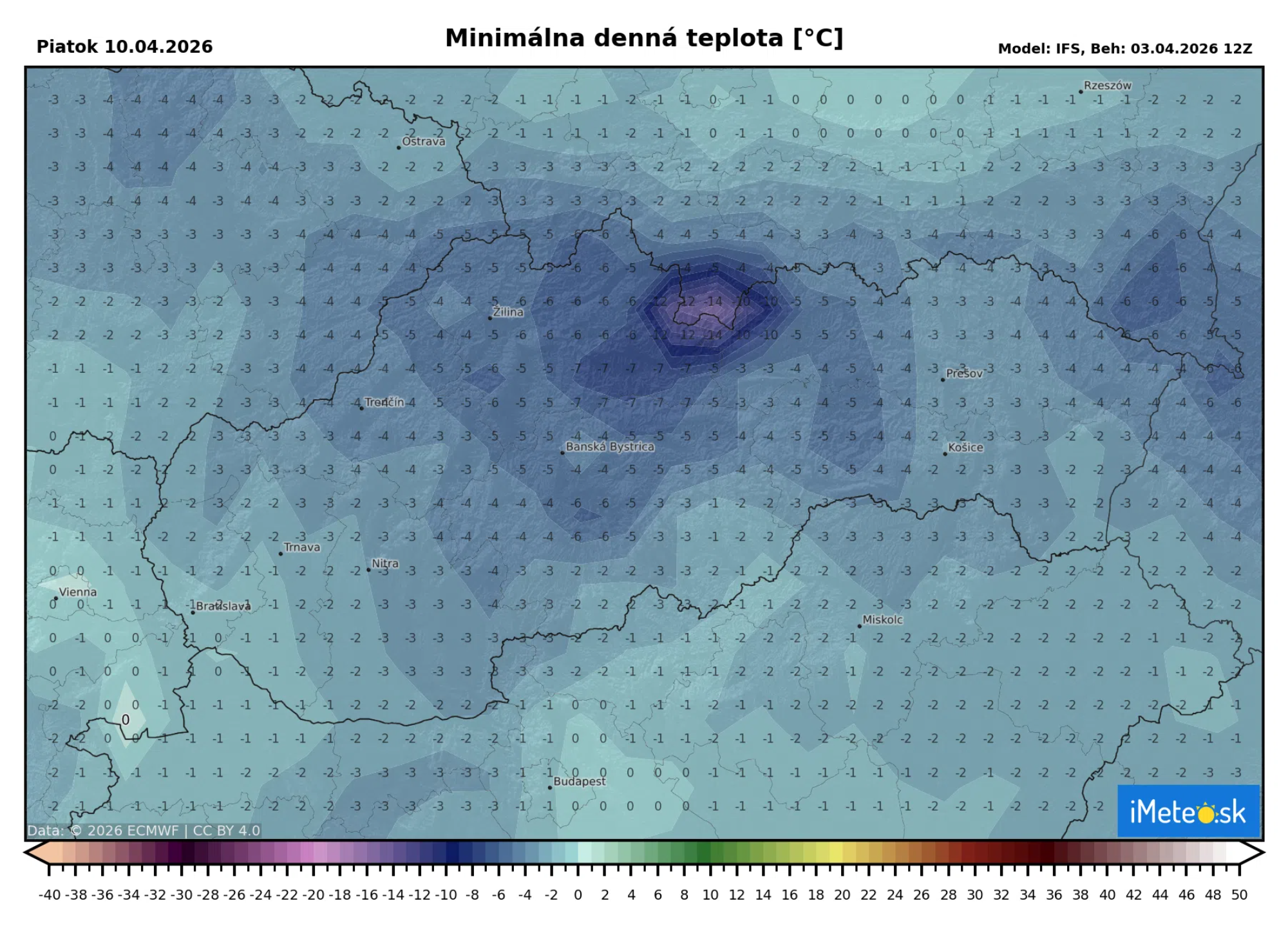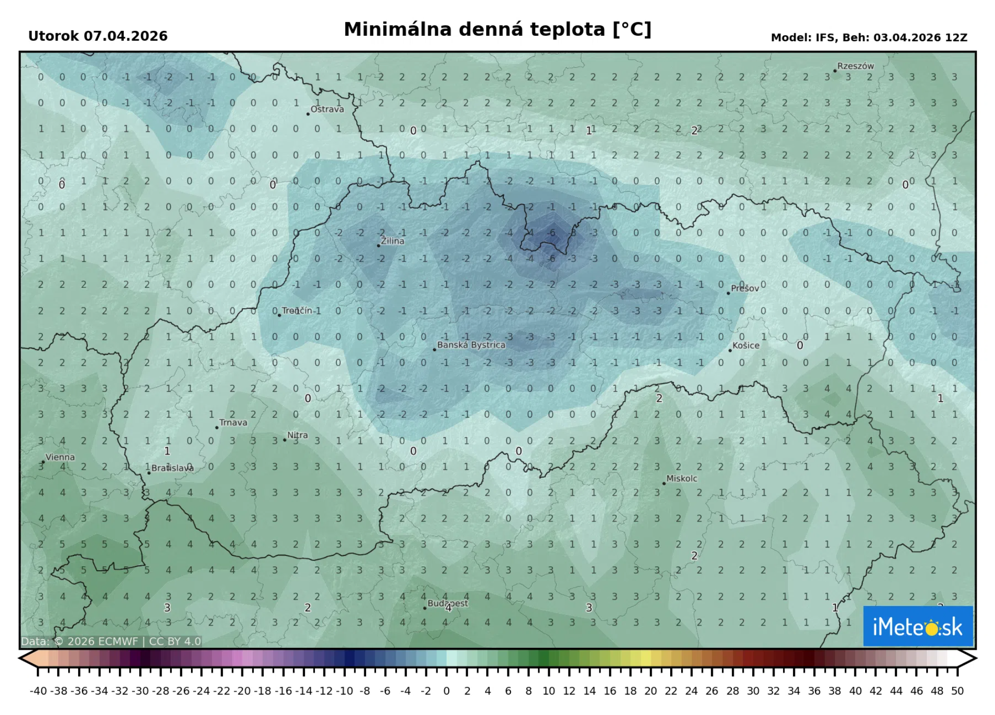 V piatok ráno by sa podľa predbežných prognóz mohli ranné teploty dostať na 0 až -6 °C, pričom mrznúť by mohlo na celom území.