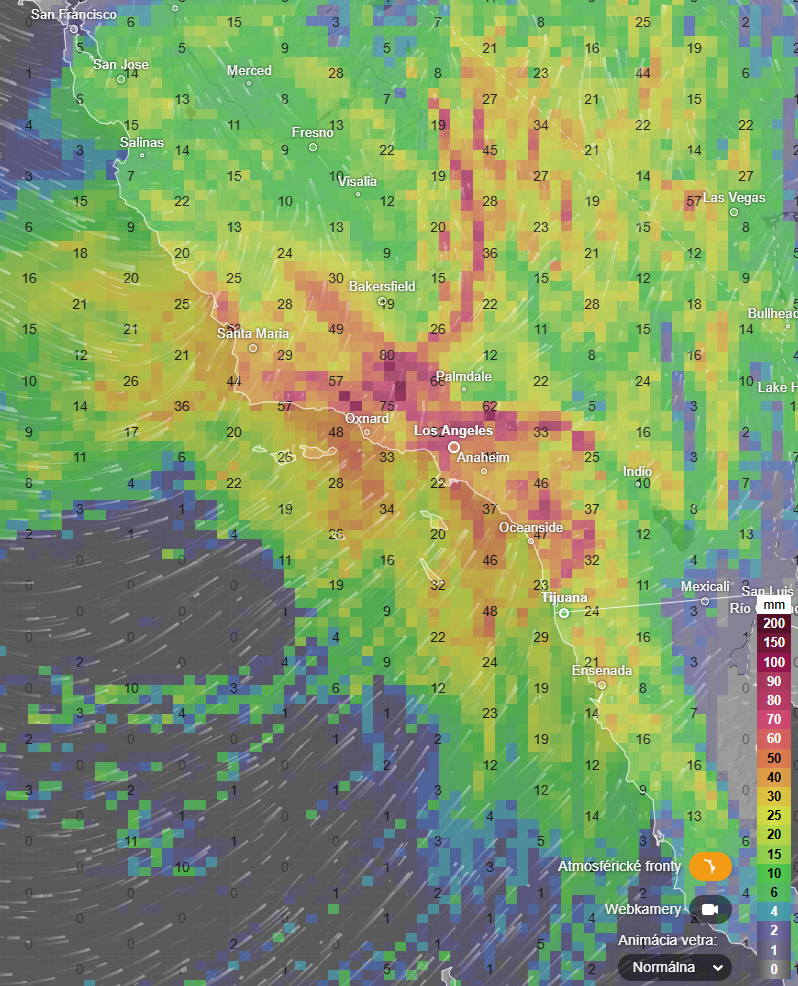 Len v južnej Kalifornii je pred povodňami varovaných vyše 22 miliónov obyvateľov. Na západné pobrežie USA sa blíži rozsiahly búrkový systém, ktorý má priniesť veľmi intenzívne zrážky.