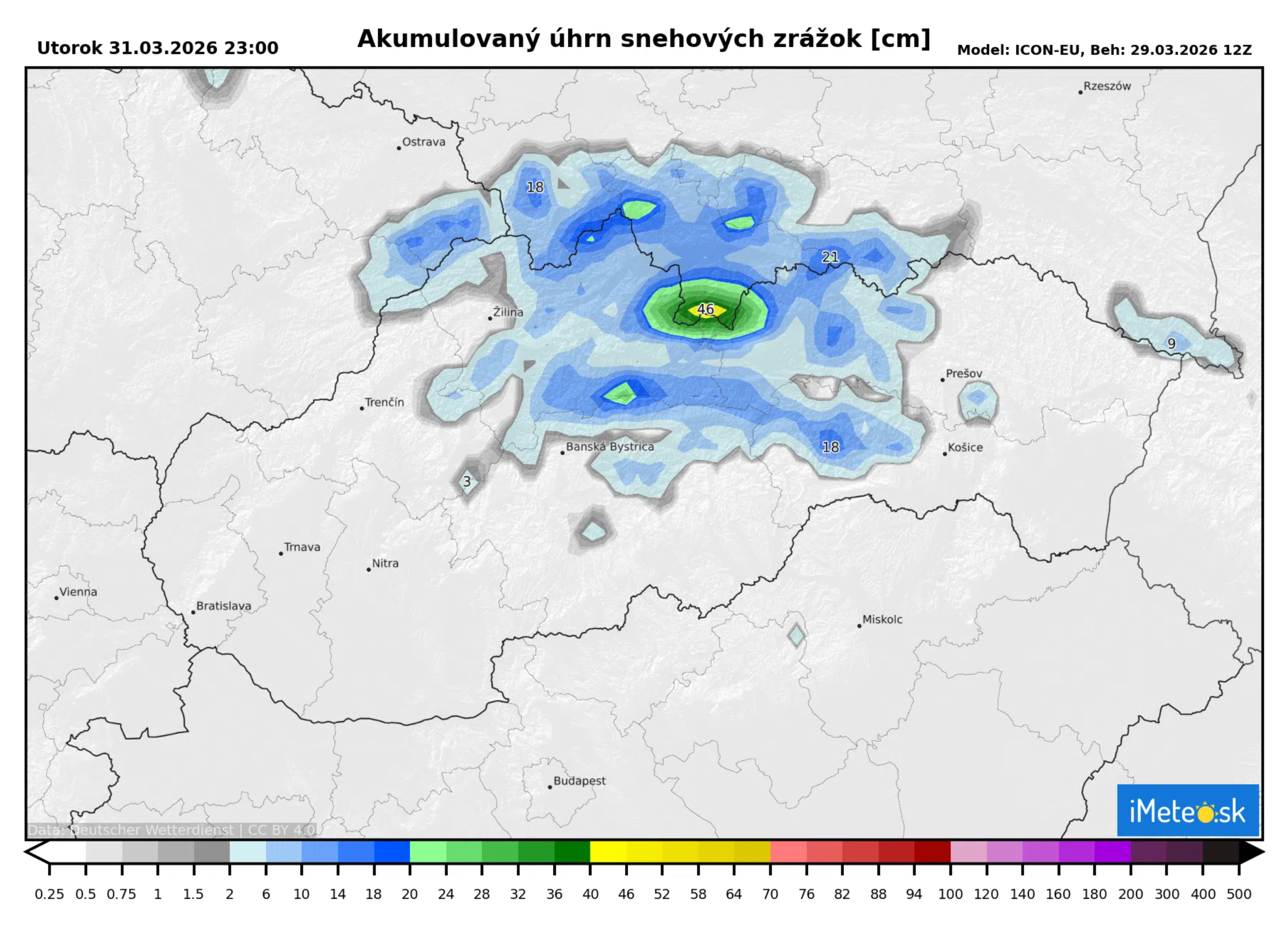 Podľa aktuálnych predpovedných modelov sa naďalej minimálne do utorka večera očakáva sneženie najmä na severozápade Slovenska, v severnej polovici stredného Slovenska a na Spiši. Ide o oblasti, kde môže zimné počasie pretrvávať dlhšie, než by sme v tomto období očakávali.