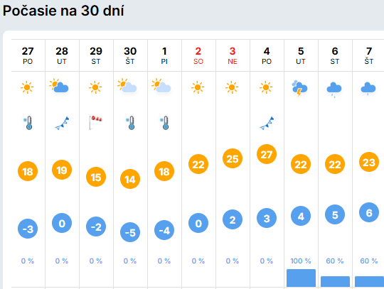 Predpoveď počasia na nasledujúce dni však naznačuje, že leto sa už čoskoro naplno prejaví a prvé májové dni by mohli priniesť výrazne vyššie teploty.