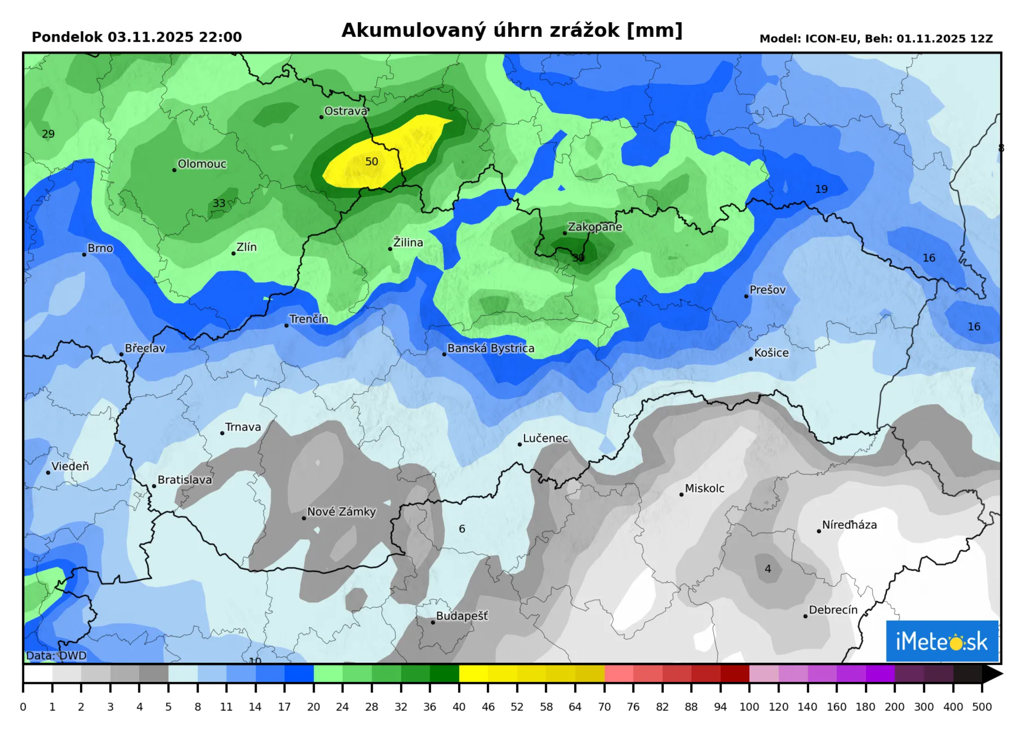Na naše územie mieri studený front, ktorý ukončí veľmi teplý víkend poriadnym lejakom, ktorý by na naše územie mohol priniesť až 50 mm zrážok. Lejak bude intenzívny, no našťastie nebude trvať príliš dlho.