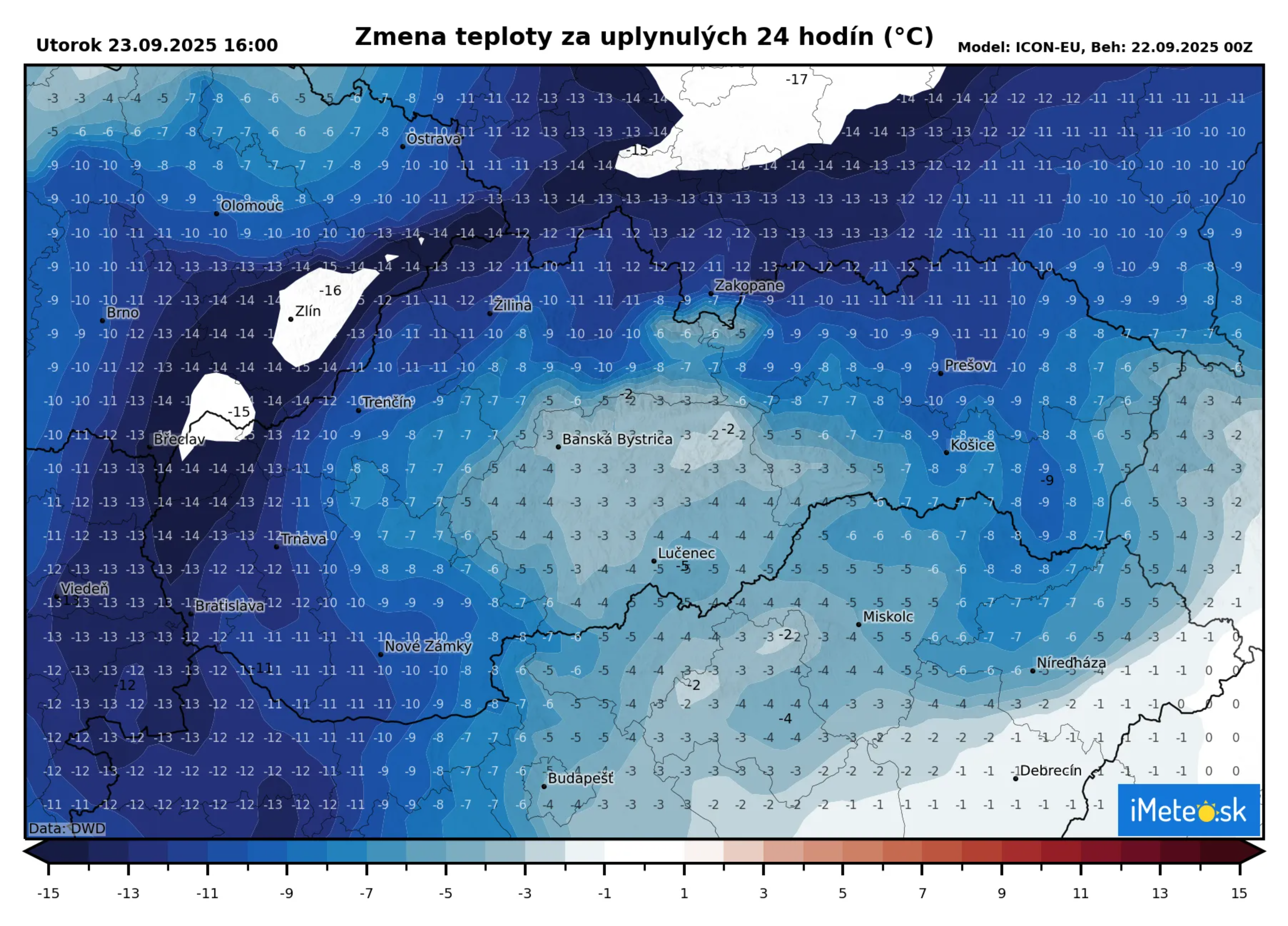 Zajtra zažijeme teplotný šok. Oproti dnešnému dňu sa ochladí aj o viac ako 10 °C a ojedinele sa môže ochladiť až o 15 °C.