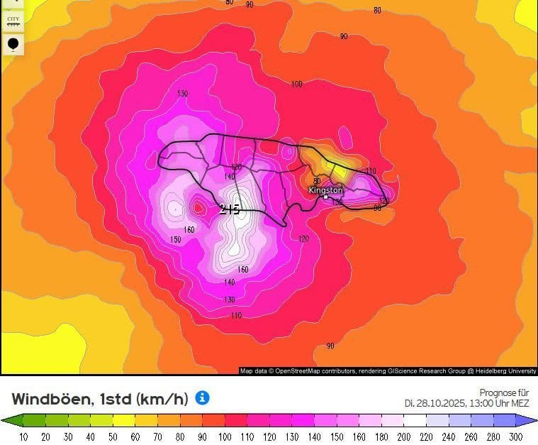 Tlak v oku hurikánu sa znížil z 908 hPa na 901 hPa. Vo všeobecnosti platí, že čím nižší je tlak, tým silnejšia je búrka, takže tento pokles naznačuje, že Melissa by mohla v nasledujúcich hodinách nabrať na sile.