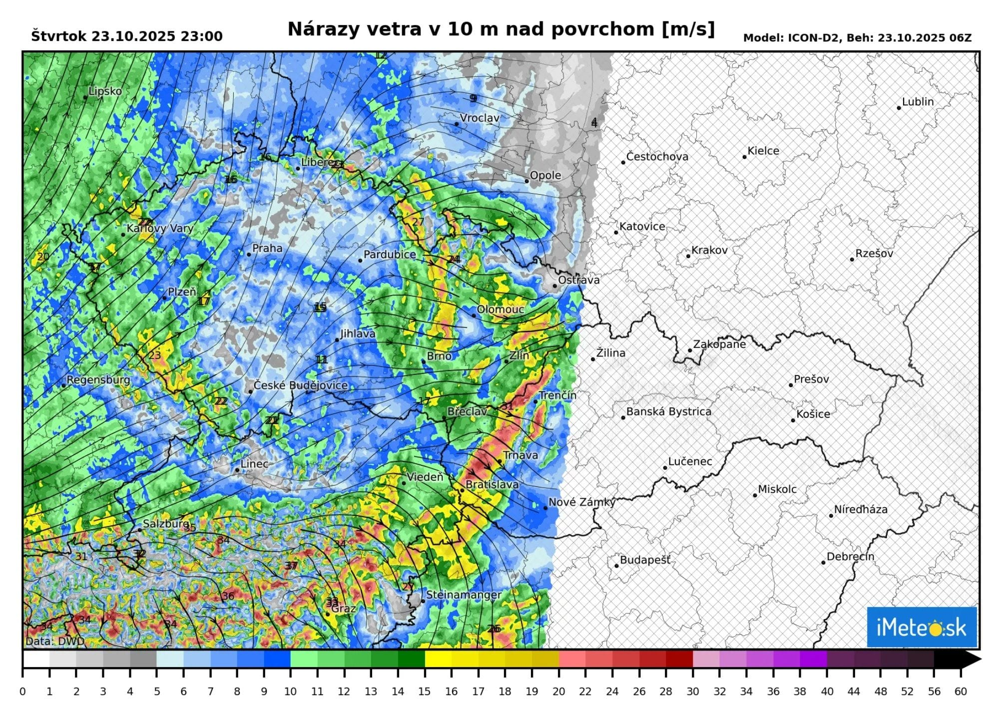 Z Rakúska začne postupovať studený front, na čele ktorého sa v našej oblasti budú tvoriť búrky, výrazne zosilnejú zrážky a predovšetkým vietor. Na západe naberie vietor výrazne na sile a aj v oblasti Malých Karpát sa očakáva silná víchrica.