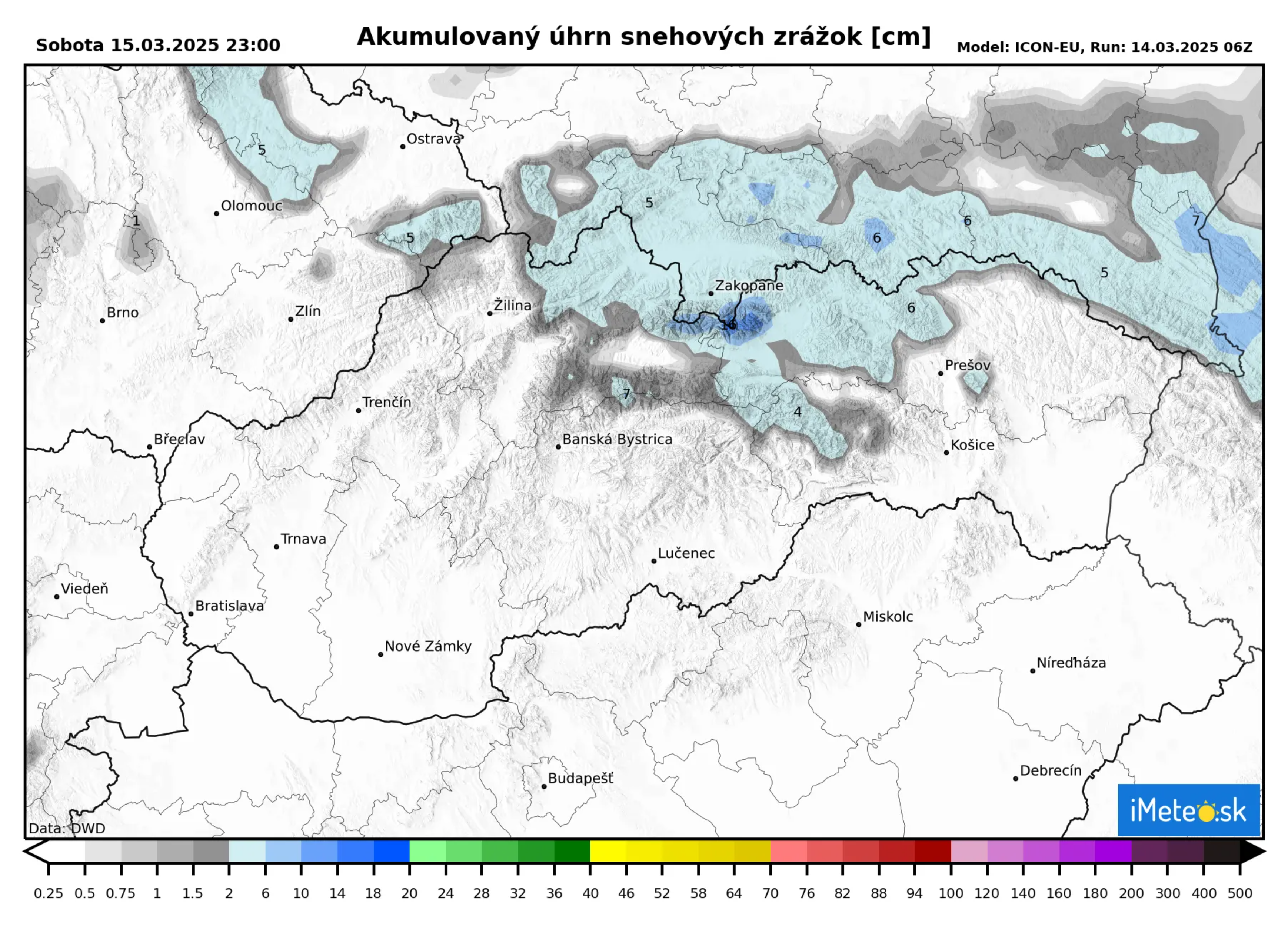 Do sobotného večera by na severe Slovenska mohlo napadnúť niekoľko centimetrov nového snehu, čo môžete vidieť na nižšie priloženej mape.