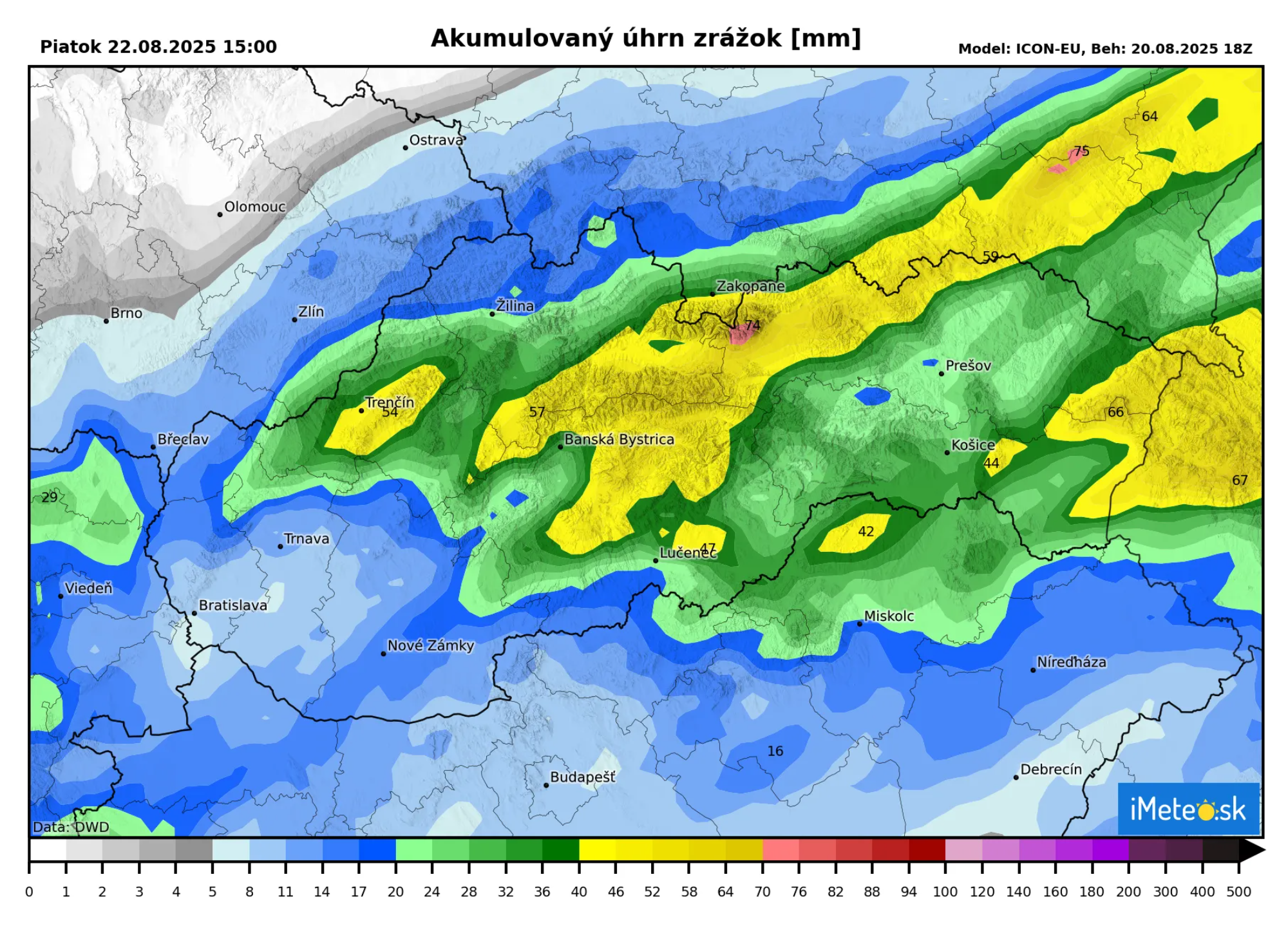 Oblasť najvýdatnejších zrážok sa bude tiahnuť od hraníc Trenčianskeho kraja cez Nízke Tatry smerom na severe východného Slovenska. V týchto oblastiach by mohlo spadnúť viac ako 50 mm zrážok, no na návetriach hôr by mohlo spadnúť lokálne až 80 mm zrážok.