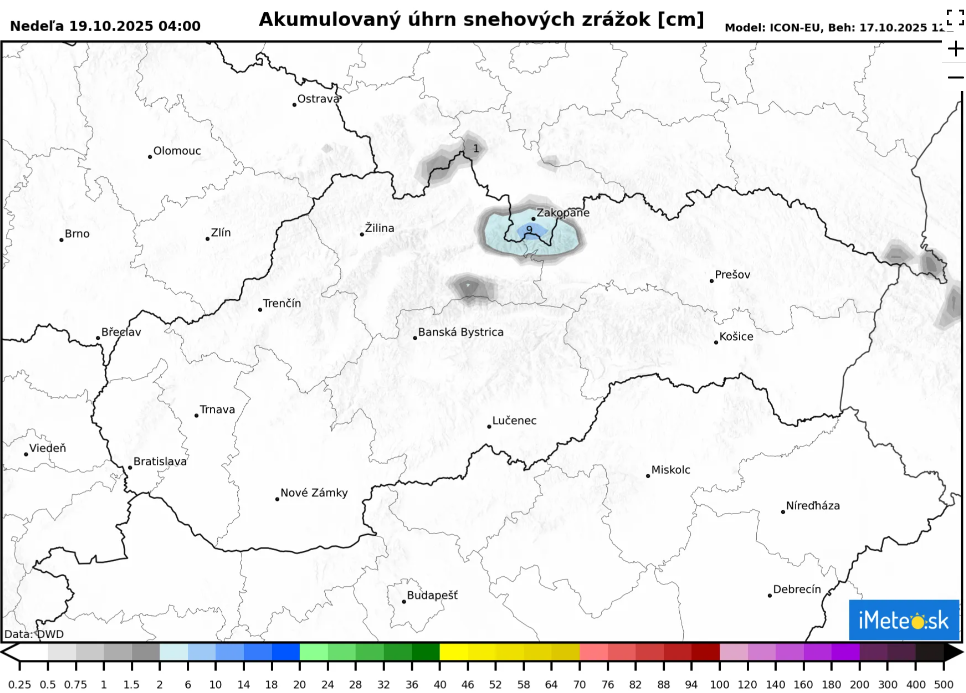Ako vidieť na mape očakávanej snehovej pokrývky, tak do nedeľňajšieho rána by mal sneh napadnúť predovšetkým v oblasti Vysokých Tatier, kde by mohlo napadnúť až 10 cm nového snehu.