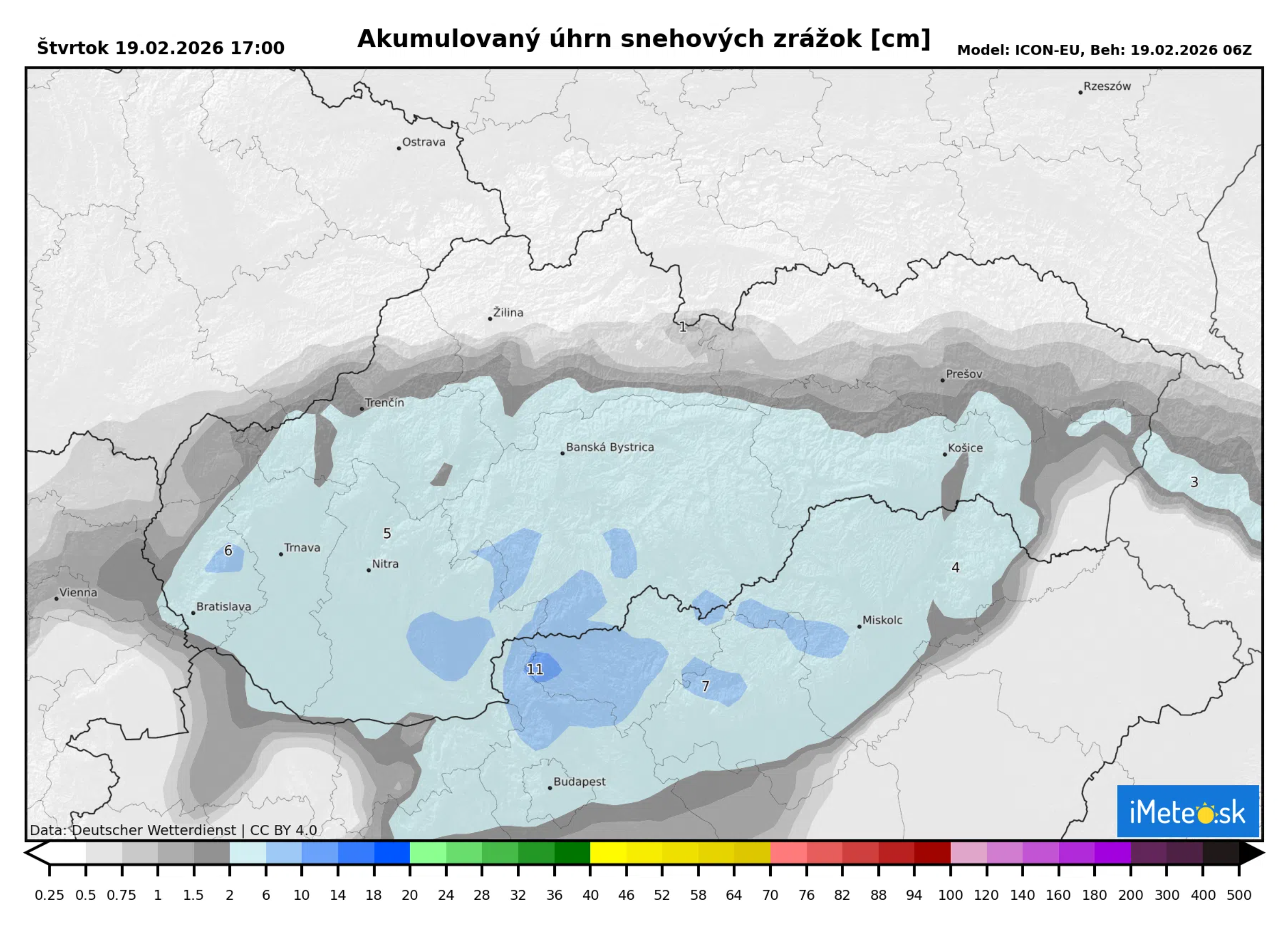 Ťažisko sneženia bude ležať na východe Rakúska, na západe Maďarska a na časti západného Slovenska. Najviac zasiahnuté budú okresy na krajnom západe.