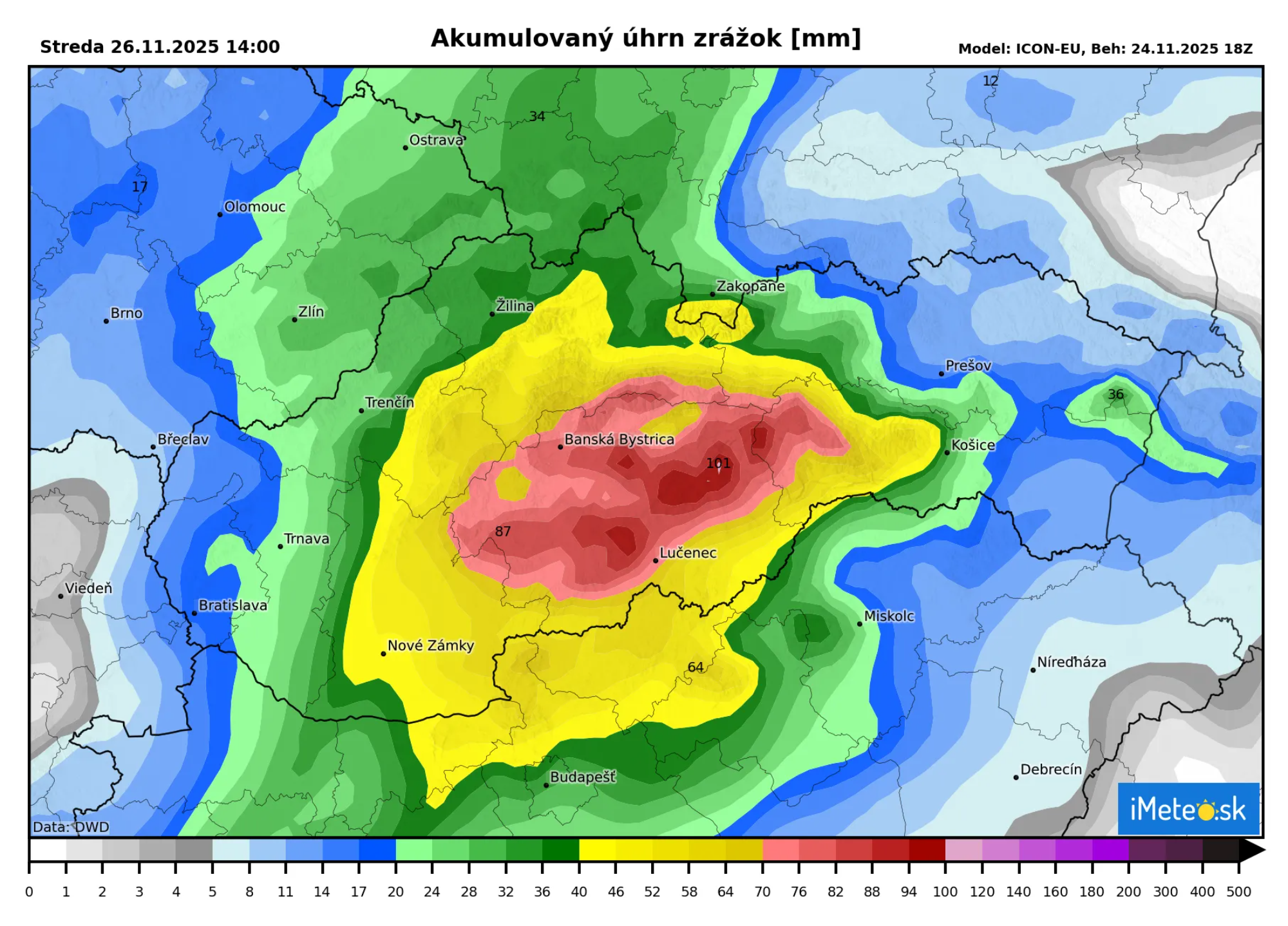 Dnes nás čaká výrazné oteplenie, ktoré spôsobí topenie tejto snehovej pokrývky a topenie zrýchli výdatný dážď. Do našich povodí sa tak dostane veľké množstvo vody, čo sa začne prejavovať na ich vzostupoch. 1 cm snehu je ekvivalent zhruba 1 mm zrážok. Dnes očakávame roztopenie približne 10 až 20 cm snehu, pričom na strednom Slovensku by malo spadnúť ďalších 60 až 100 mm zrážok.