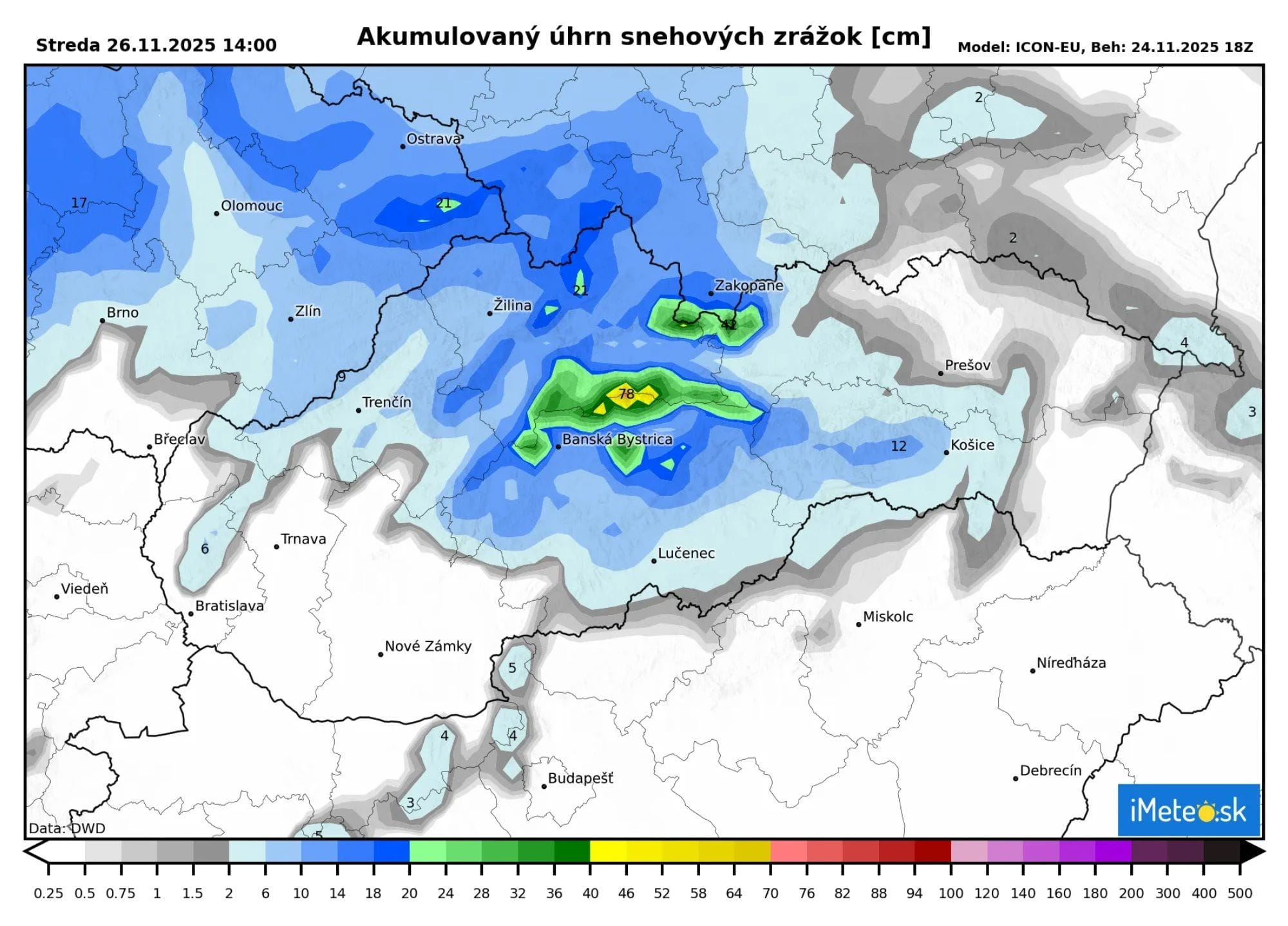Na vlnu sneženia sa však celkom určite musia pripraviť obyvatelia severného a severozápadného Slovenska. Tu by sa dážď mal dnes okolo 21:00 začať meniť na sneženie.