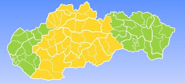 Pre najviac zasiahnuté okresy Slovenska sme vydali žlté varovanie, ktoré je platné až do zajtrajšieho rána.