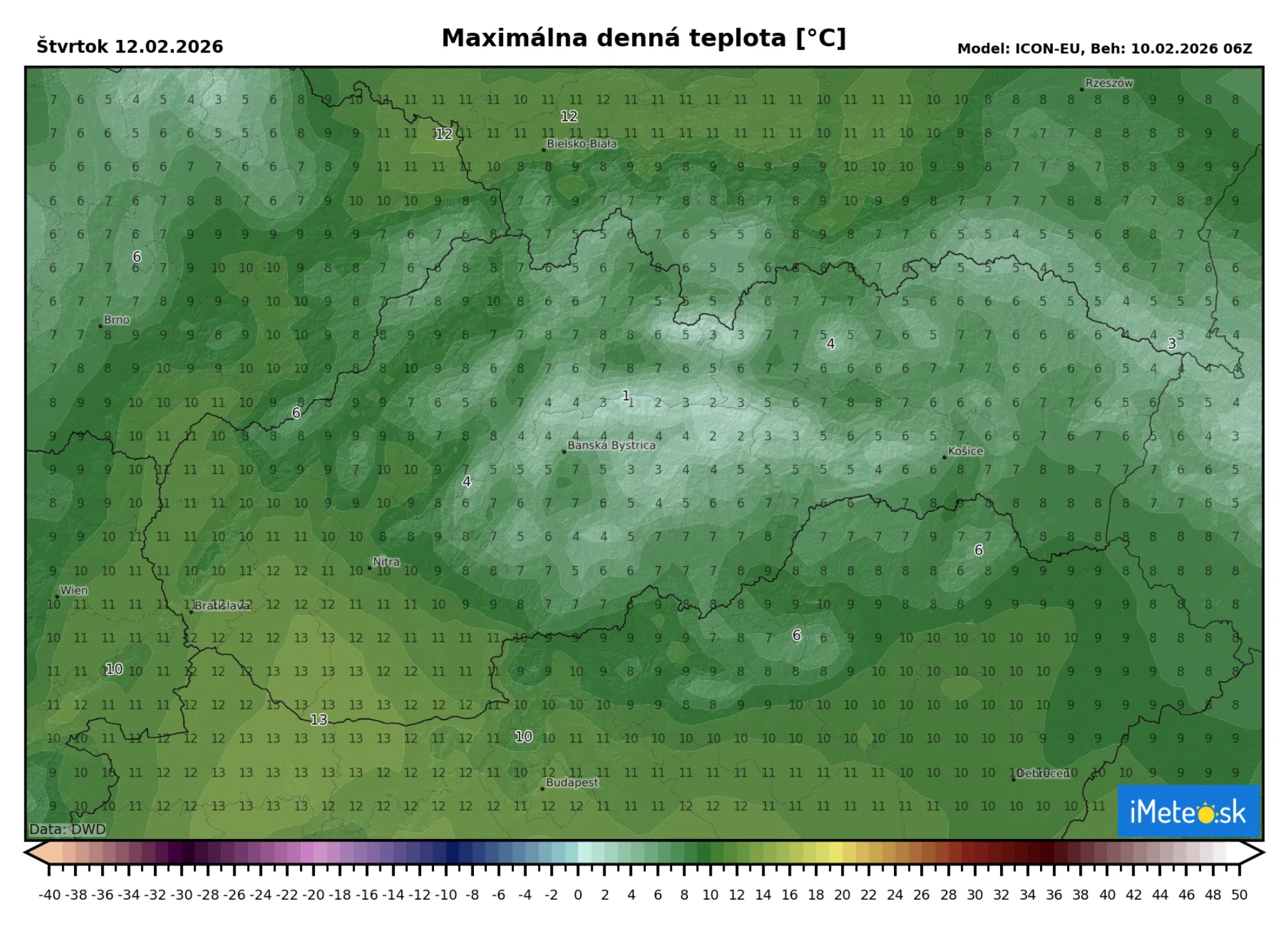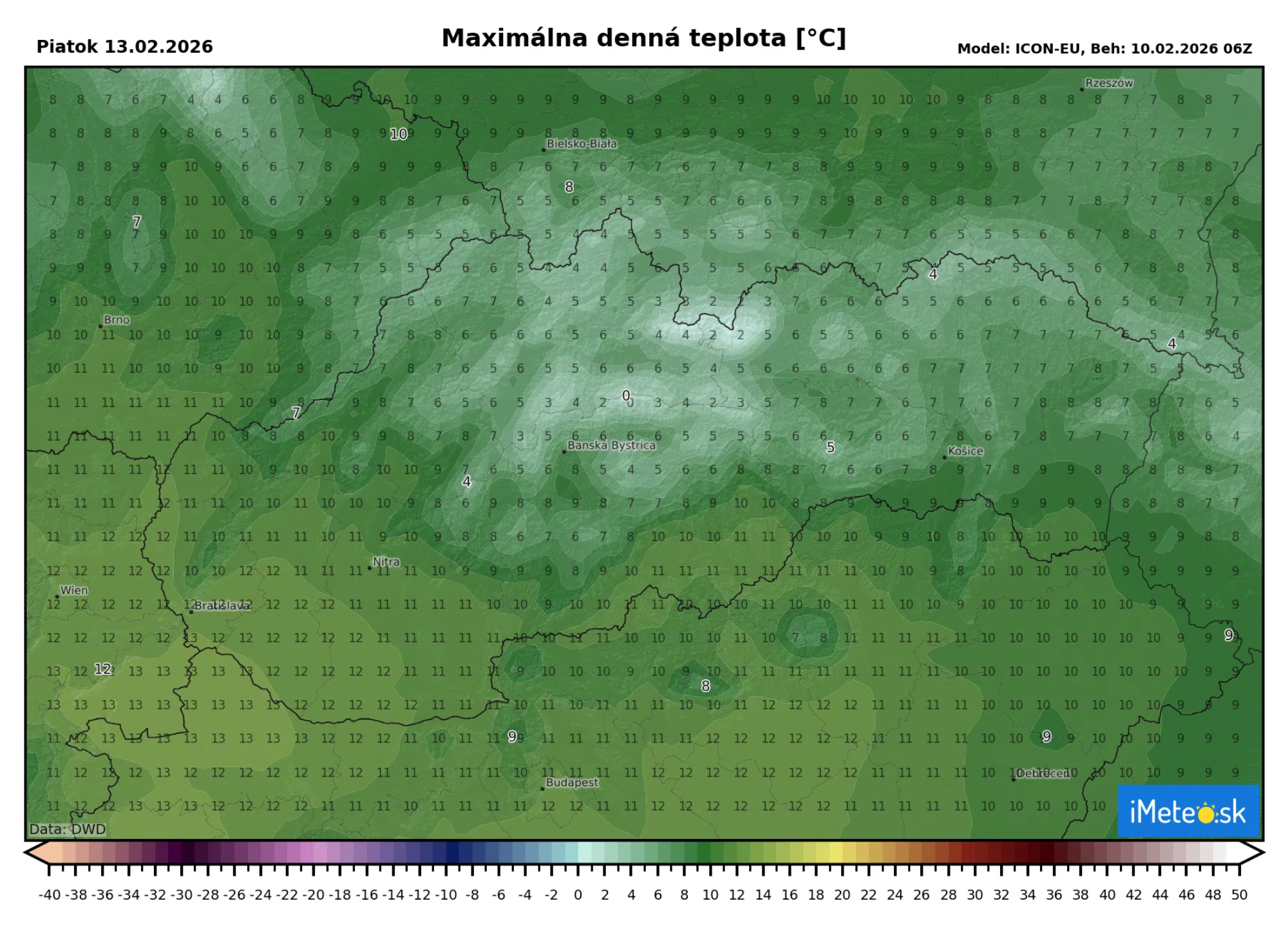 Už zajtra sa teploty dostanú na úroveň okolo +10 °C, no v nadchádzajúcich dňoch bude ešte teplejšie. Najteplejšími dňami by mal byť štvrtok a piatok, kedy sa teploty na Slovensku dostanú na +5 až +10 °C. Na juhozápade Slovenska však môže byť až okolo +13 °C a nie je vylúčené ani to, že teploty atakujú až hodnotu +14 °C.
