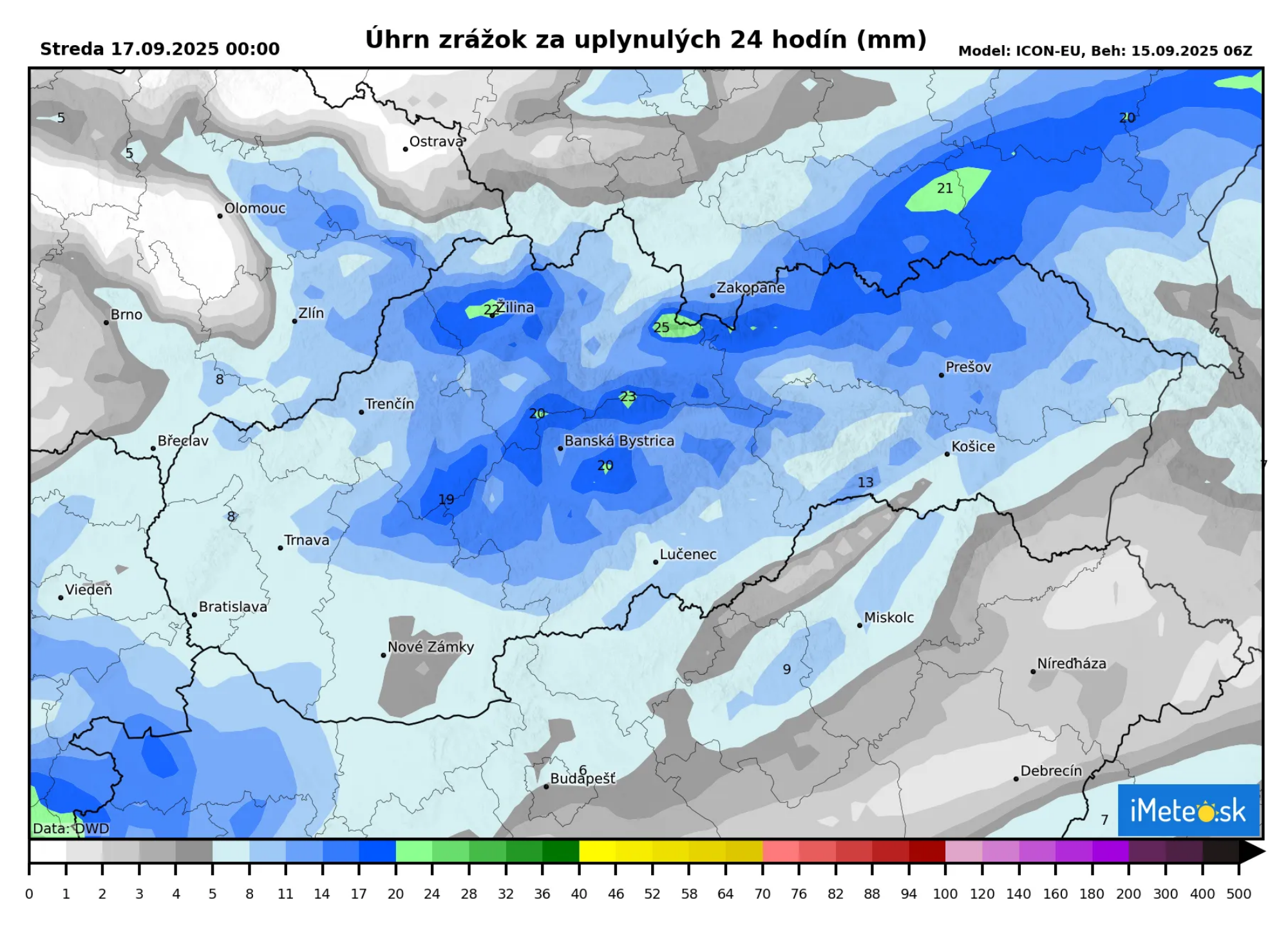Takýto výdatný dážď očakávame najmä v Žilinskom kraji a predovšetkým v oblasti hôr, kde by zároveň malo napršať aj najviac.