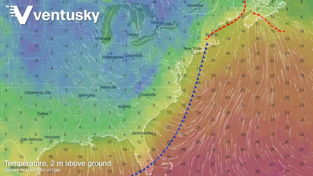 Takmer celá východná časť USA zažije prvú a hneď mimoriadne výraznú vlnu studeného počasia. Od severu sa tu totiž dostane veľmi chladný vzduch, ktorý zatečie až nad Floridu.