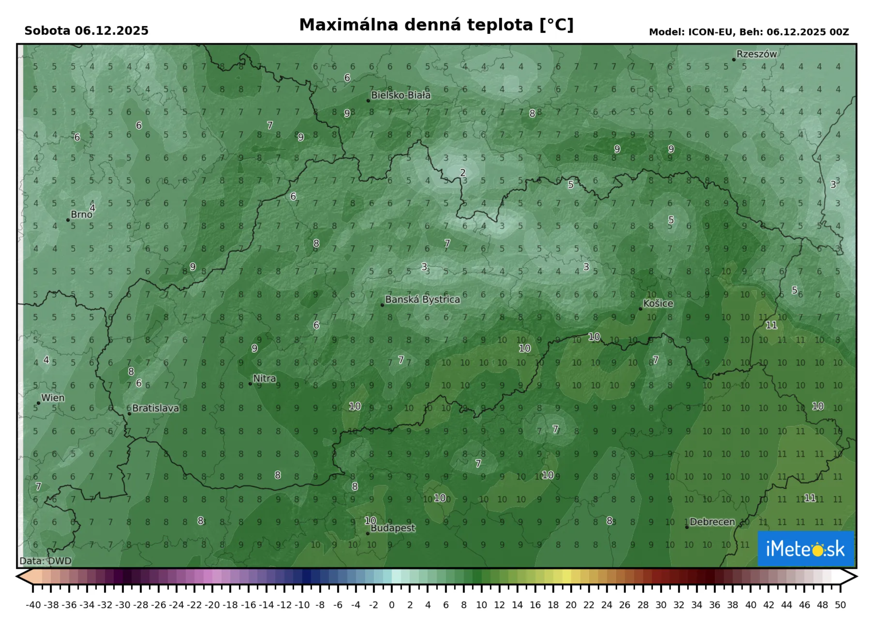 Sobota prinesie opäť nadpriemerné teplo – najvyššia denná teplota vystúpi l +7 až +12 °C, na severe ojedinele chladnejšie. Teplota na horách vo výške 1 500 m n. m. bude okolo +4 °C.