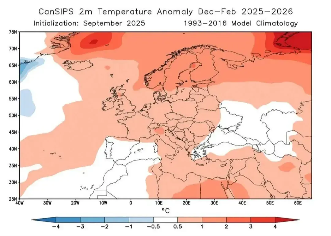 Konkrétne model CanSIPS naznačuje to, že zimná sezóna by mohla byť pomerne dynamická. Zima by mala byť miernejšia, vlhšia a veternejšia nad západnou a severnou Európou s menším priestorom pre dlhotrvajúce chladné bloky.