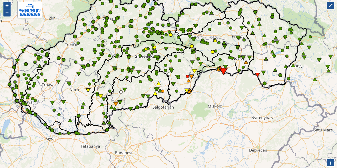 O polnoci dosiahli vodné toky Roňava v Michaľanoch, Bodva v Turni nad Bodvou a Ida v Janíku až úroveň 3. povodňového stupňa. Na tokoch Rimava, Slaná, Muráň, či Štiavnica platí 2. povodňový stupeň. Rozvodnené sú aj viaceré ďalšie toky.