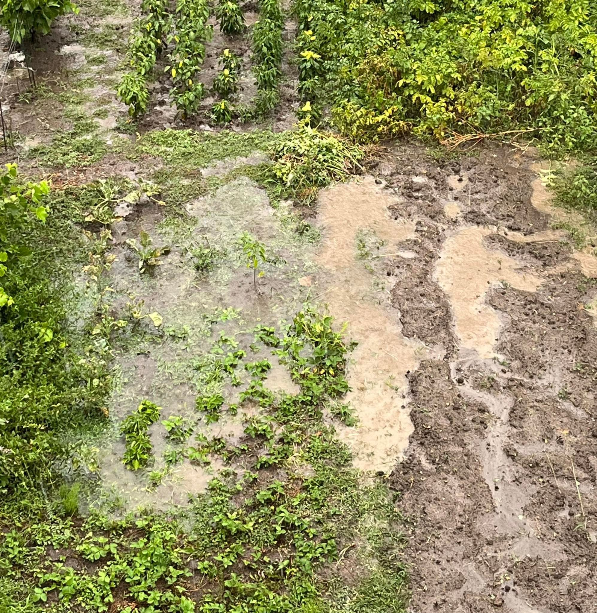 Zaplavené záhrady hlásia naši čitatelia z Fiľakova, kde len za poslednú hodinu spadlo takmer 13 mm zrážok.