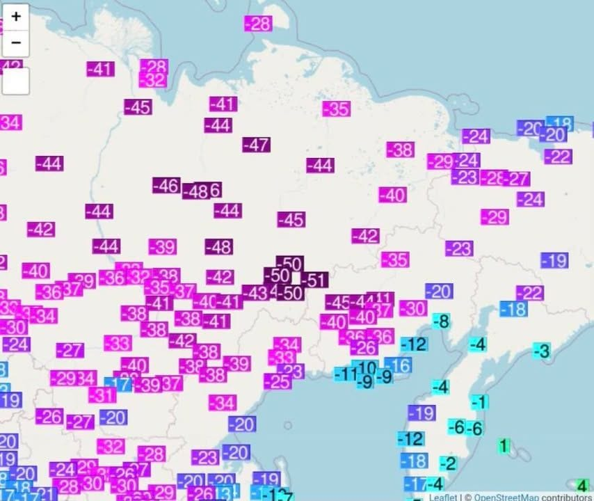 Na Sibíri dnes prvýkrát v tejto zimnej sezóne klesli teploty pod -50 °C. Najnižšie hodnoty zaznamenali tradične v Jakutskej oblasti, ktorá patrí k najchladnejším obývaným miestam na Zemi.