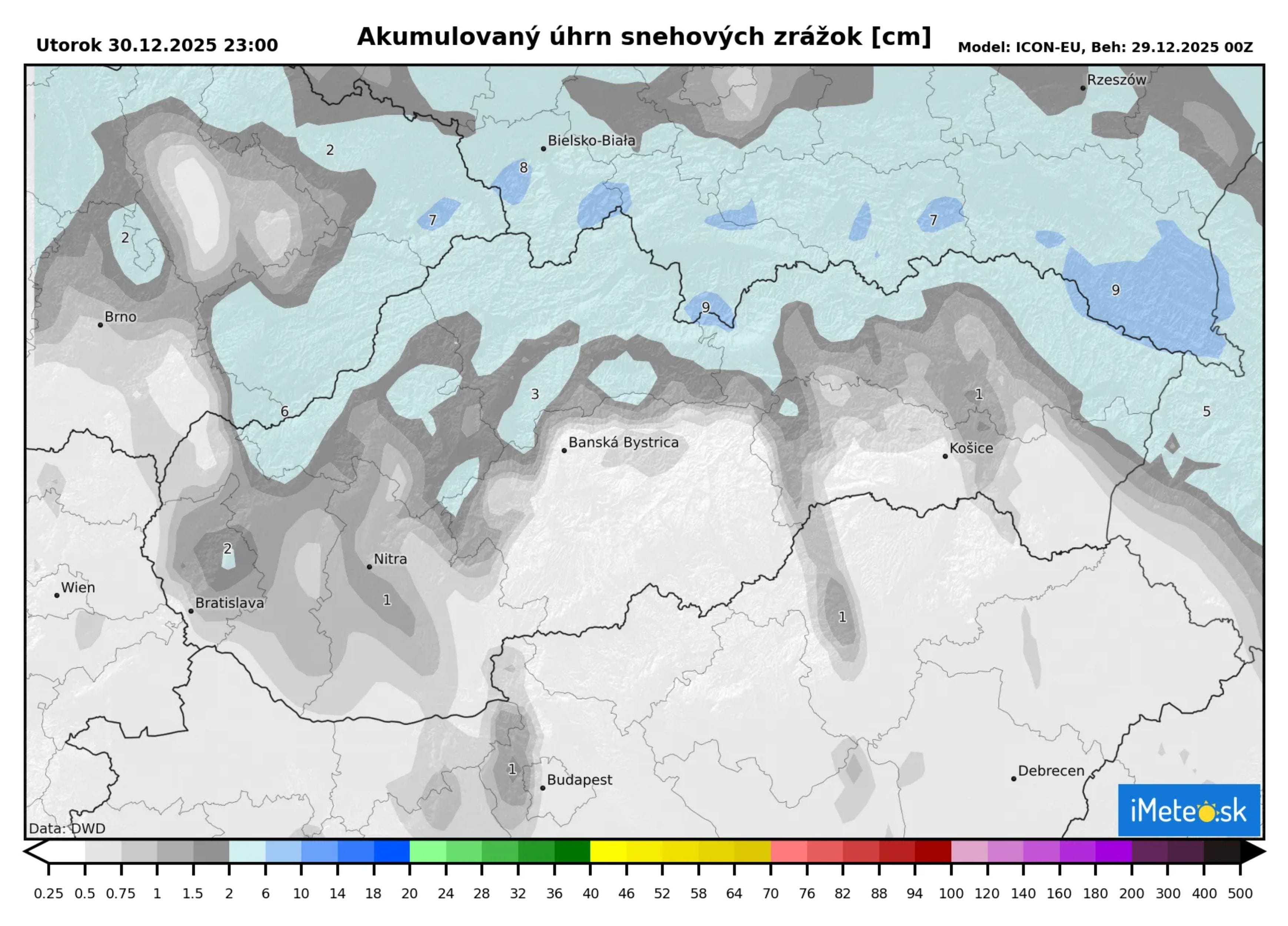 Slabo by mohlo poprášiť aj nížiny západného Slovenska. Táto prvá vlna sneženia však ešte veľa snehu neprinesie a maximálne pripadne do 5 cm, aj to len na krajnom severe.