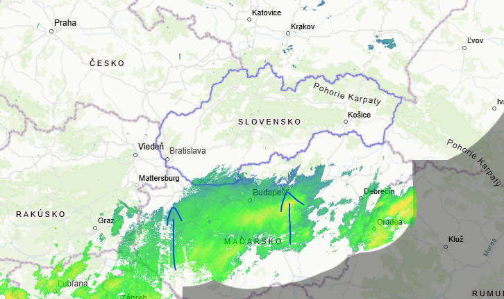 Aktuálny pohľad na radar naznačuje, že nad Maďarskom sa už niečo chystá. Tvoria sa tu zrážky, ktoré súvisia s treťou vlnou sneženia.