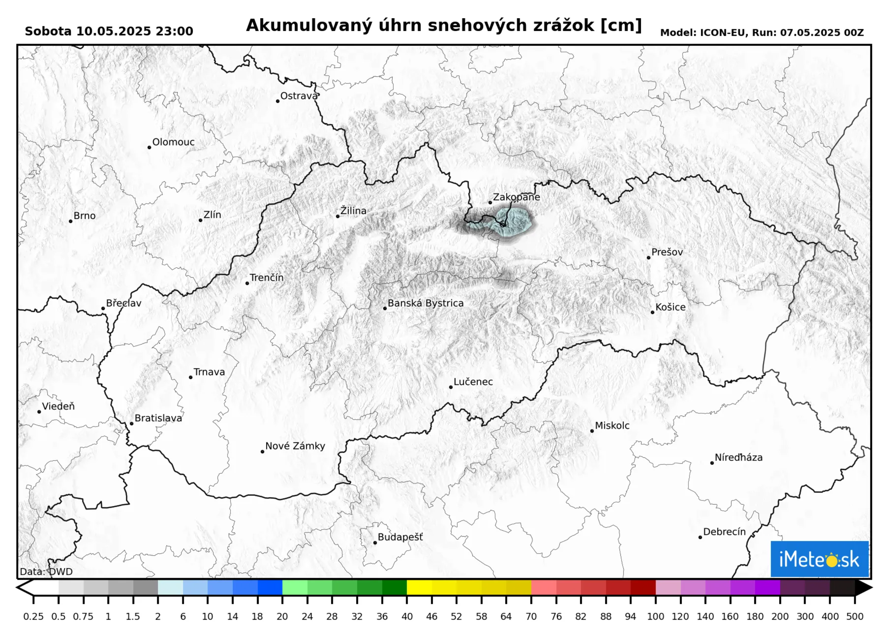 V Tatrách by však malo aj naďalej snežiť, pričom vo Vysokých Tatrách modely odhadujú vo výšku snehovej pokrývky okolo 5 cm.