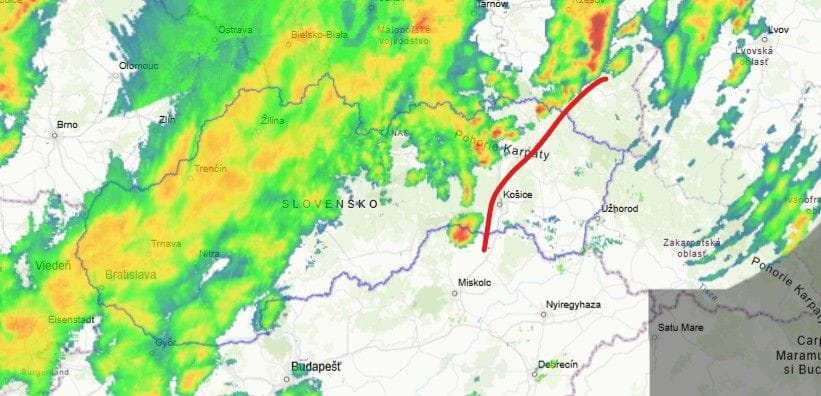 V nadchádzajúcich hodinách však bude búrok výraznejšie viac. Už na spojnici Prešov-Košice bude dochádzať k zosilňovaniu prehánok a vo východnej časti východného Slovenska dokonca očakávame silnejšie búrky.