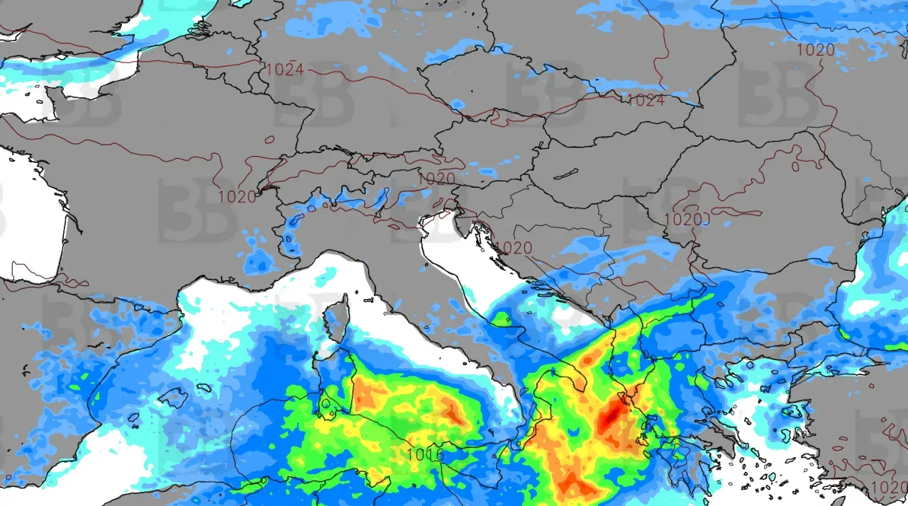 Južnejšie, od subtropického Atlantiku až po Pyrenejský polostrov, sa rozprestiera nízkotlaková oblasť, ktorá prináša prevažne oblačné a daždivé počasie. V dôsledku tejto konfigurácie je atlantické prúdenie odklonené a spomalené. Prúdi po širokej oblúkovej dráhe smerom na východnú Európu, kde sa prejavuje chladnejším a vlhším počasím.