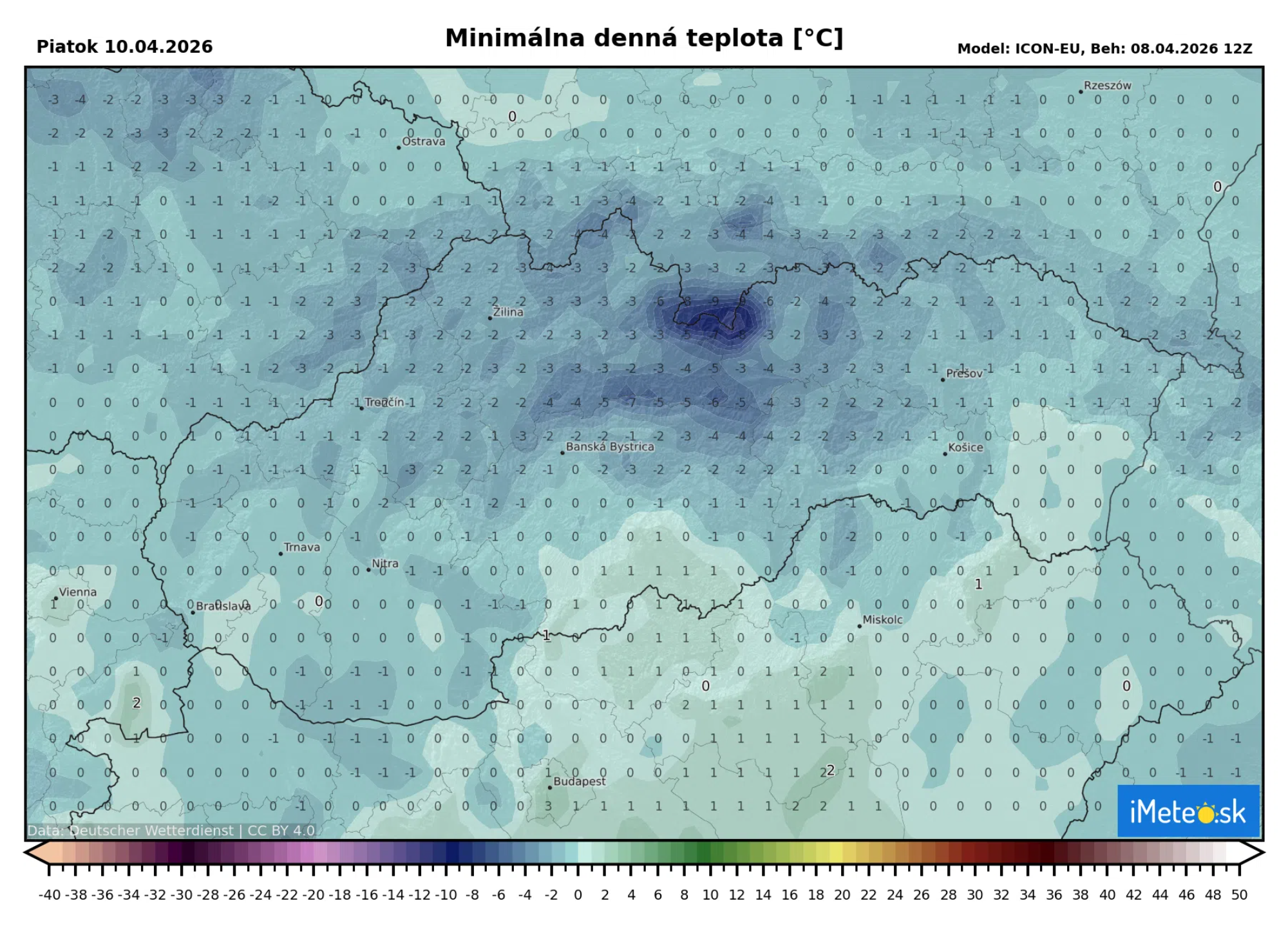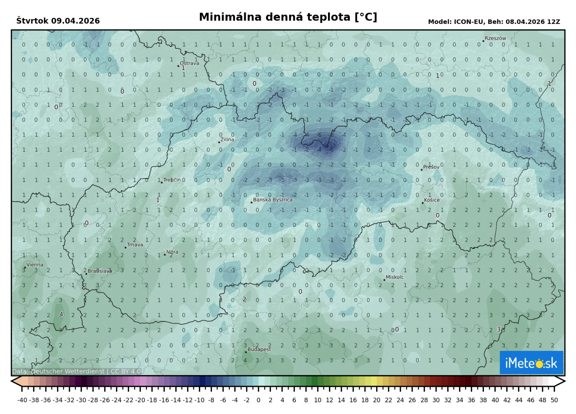 V prízemnej vrstve, teda vo výške 5 cm nad zemou, by malo mrznúť na takmer celom území.