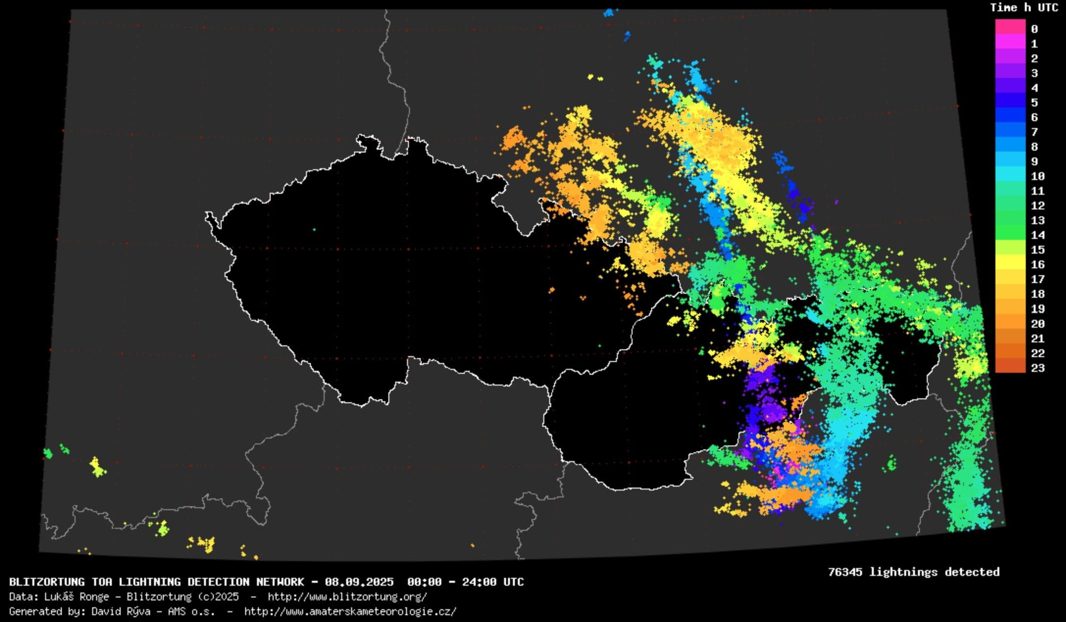 Pondelkové búrky boli na našom území pomerne silné. Celkovo na našom území udrelo takmer 14 000 bleskov, čo je na september pomerne veľa.