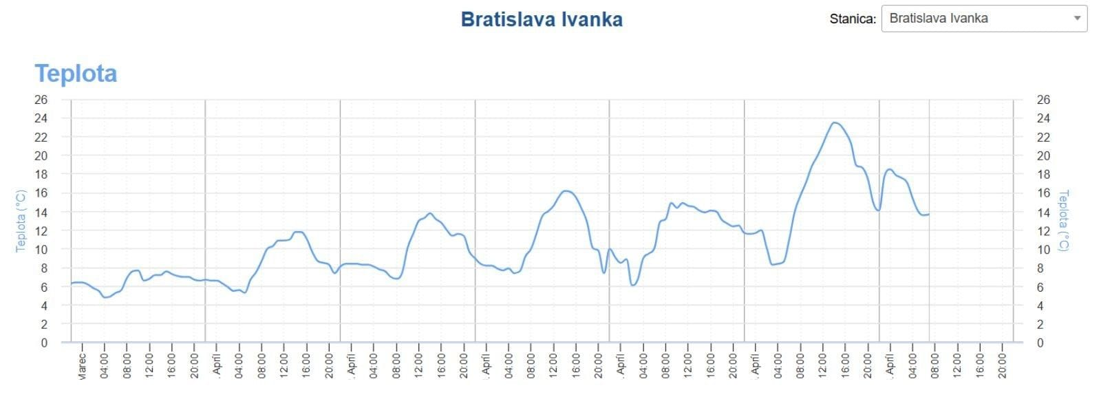 Najteplejšie bolo na stanici Bratislava Ivanka, kde po polnoci teploty vystúpili až k +18,5 °C.