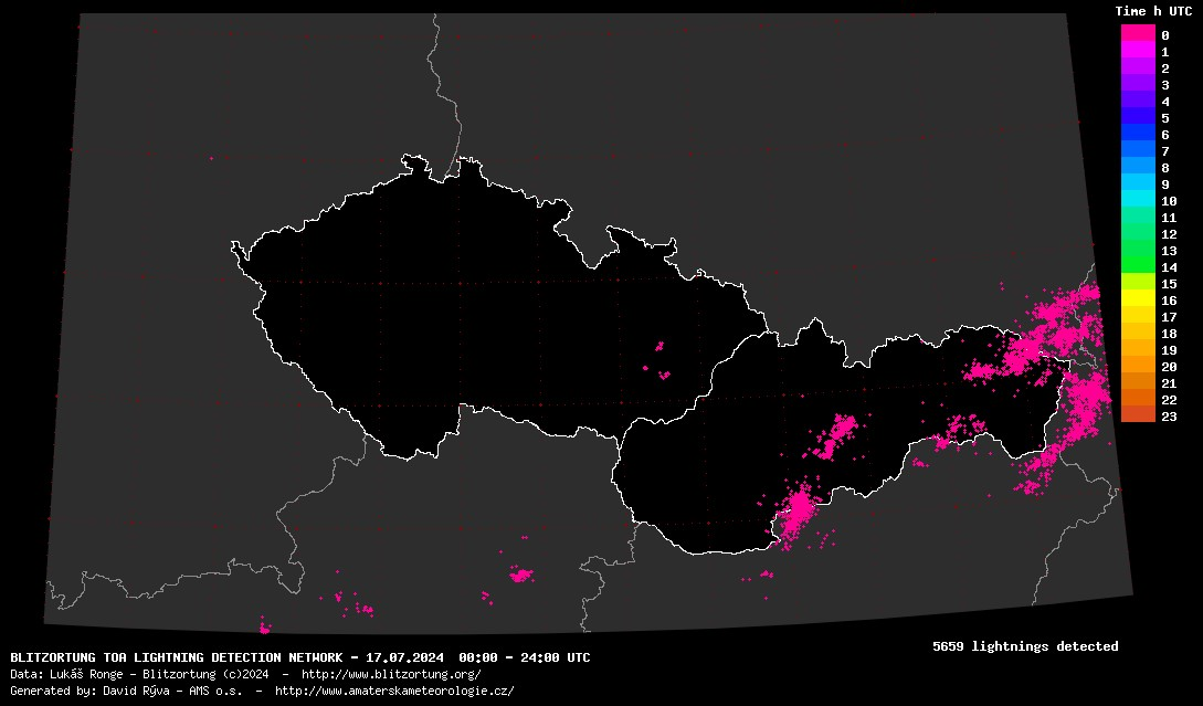 Krátko po 3:00 už máme búrky aj na Horehroní a na mnohých miestach východného Slovenska. Detektory bleskov zatiaľ zaznamenali cez 1300 bleskových úderov.