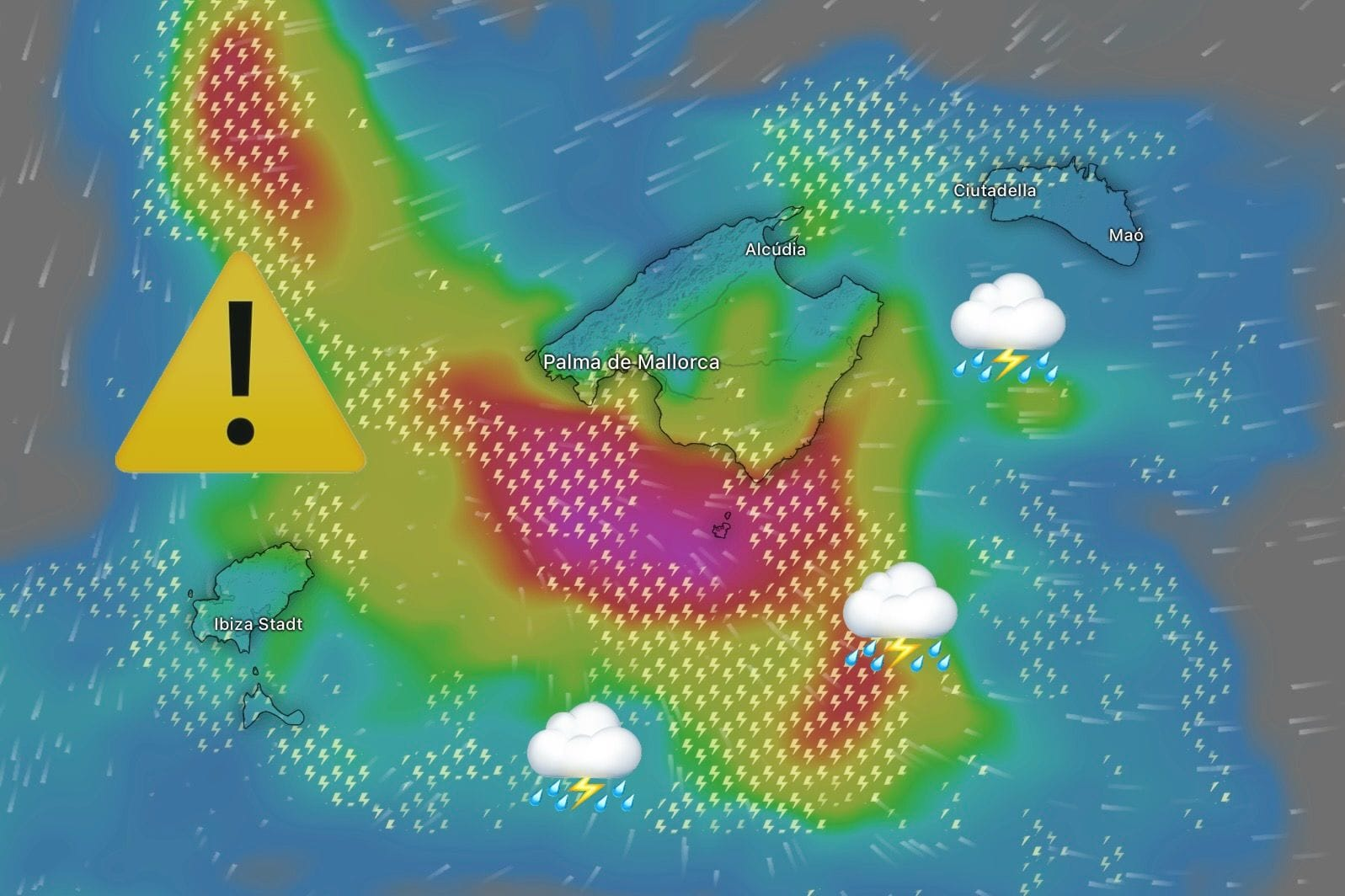 Silné búrky sa momentálne preháňajú Baleárskymi ostrovmi, kde už napáchali veľa škody, a to najmä v juhozápadnej časti Malorky, kde bolo vyvrátených mnoho stromov a voda po intenzívnych dažďoch zaplavila cesty a ulice.