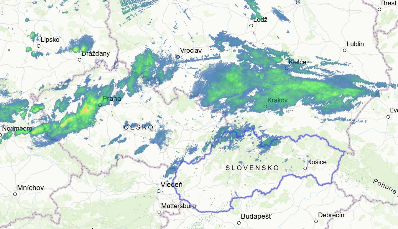 V nadchádzajúcich hodinách čaká naše územie zmena počasia o ktorú sa postará studený front, ktorý už v týchto chvíľach ovplyvňuje počasie v Poľsku a v Česku, kde sa vyskytujú zrážky.