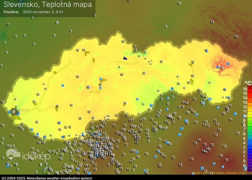 Okrem výrazného lejaku však dorazilo aj ochladenie. Kým na západe sa aktuálne teploty pohybujú okolo +10 °C, na východe je +14 °C. Následne sa bude za frontom viac ochladzovať.