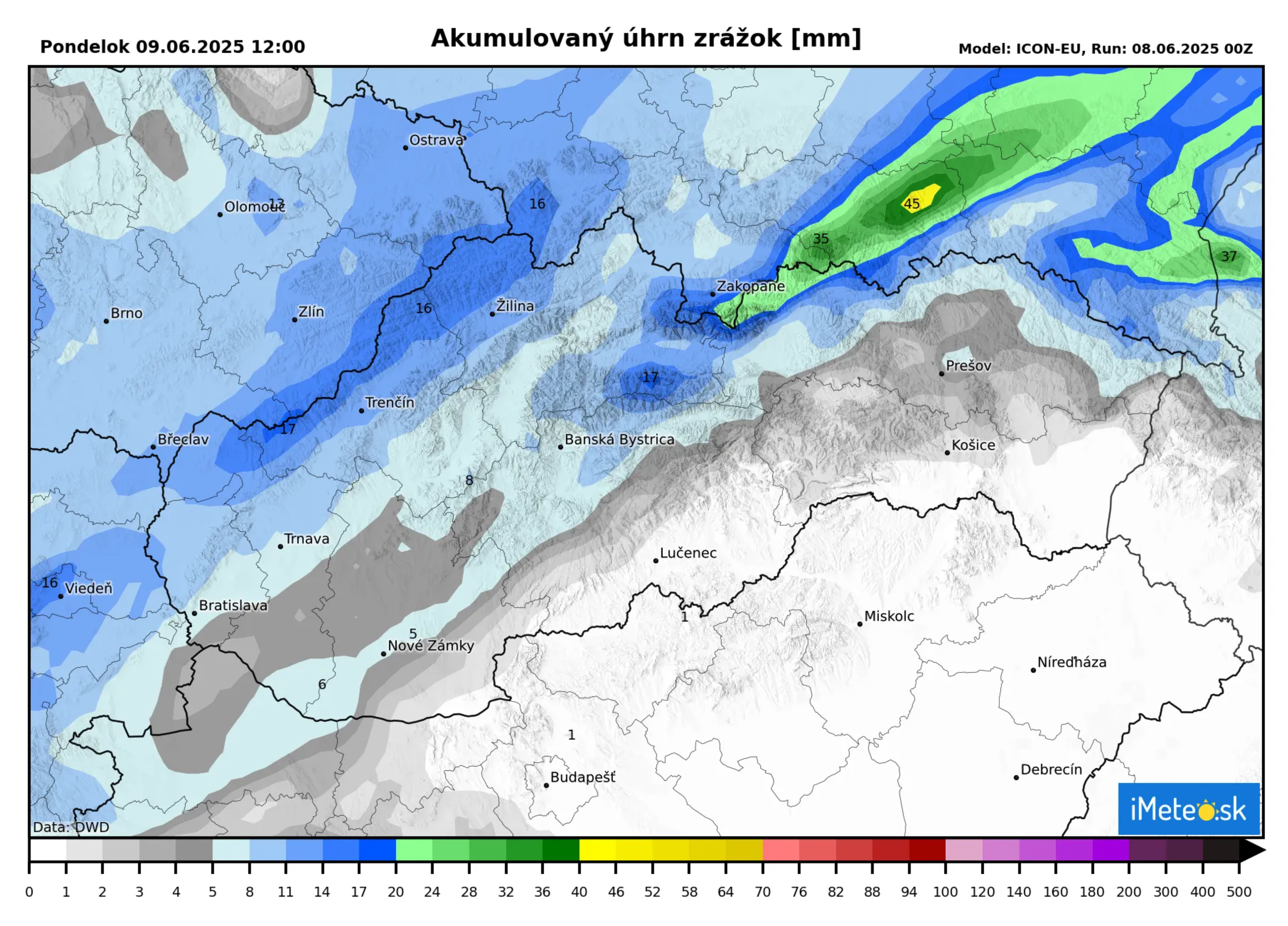 V oblasti východného Slovenska by sa prvé búrky mohli začať tvoriť už okolo 13:00. Aktuálne najvyššia pravdepodobnosť výskytu búrok je v krajných severných a východných okresoch, kde by ojedinele mohla vzniknúť aj silnejšia, možno až supercelárna búrka.