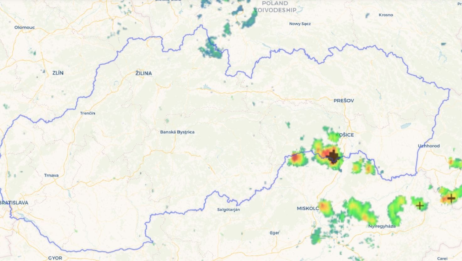 Prvé búrky vznikajú pred 16:00 h v okolí Moldavy nad Bodvou.