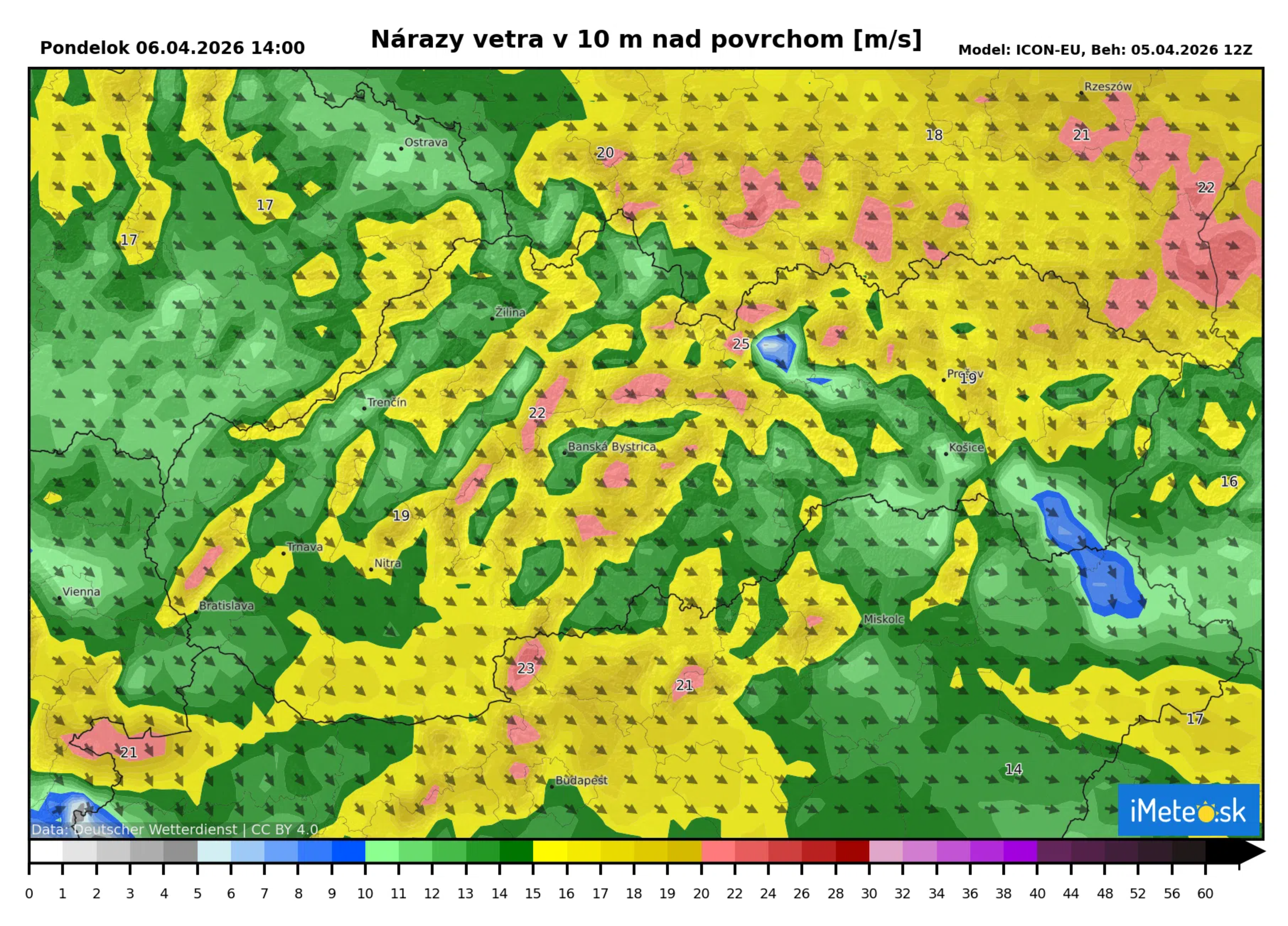 Ešte silnejší vietor sa očakáva na horách, kde by nárazy mohli dosahovať rýchlosť až cez 25 m/s. Vietor by mal začať slabnúť vo večerných hodinách. Noc by mala byť pokojnejšia, no zajtra dopoludnia sa opäť rozfúka a to na celom území.