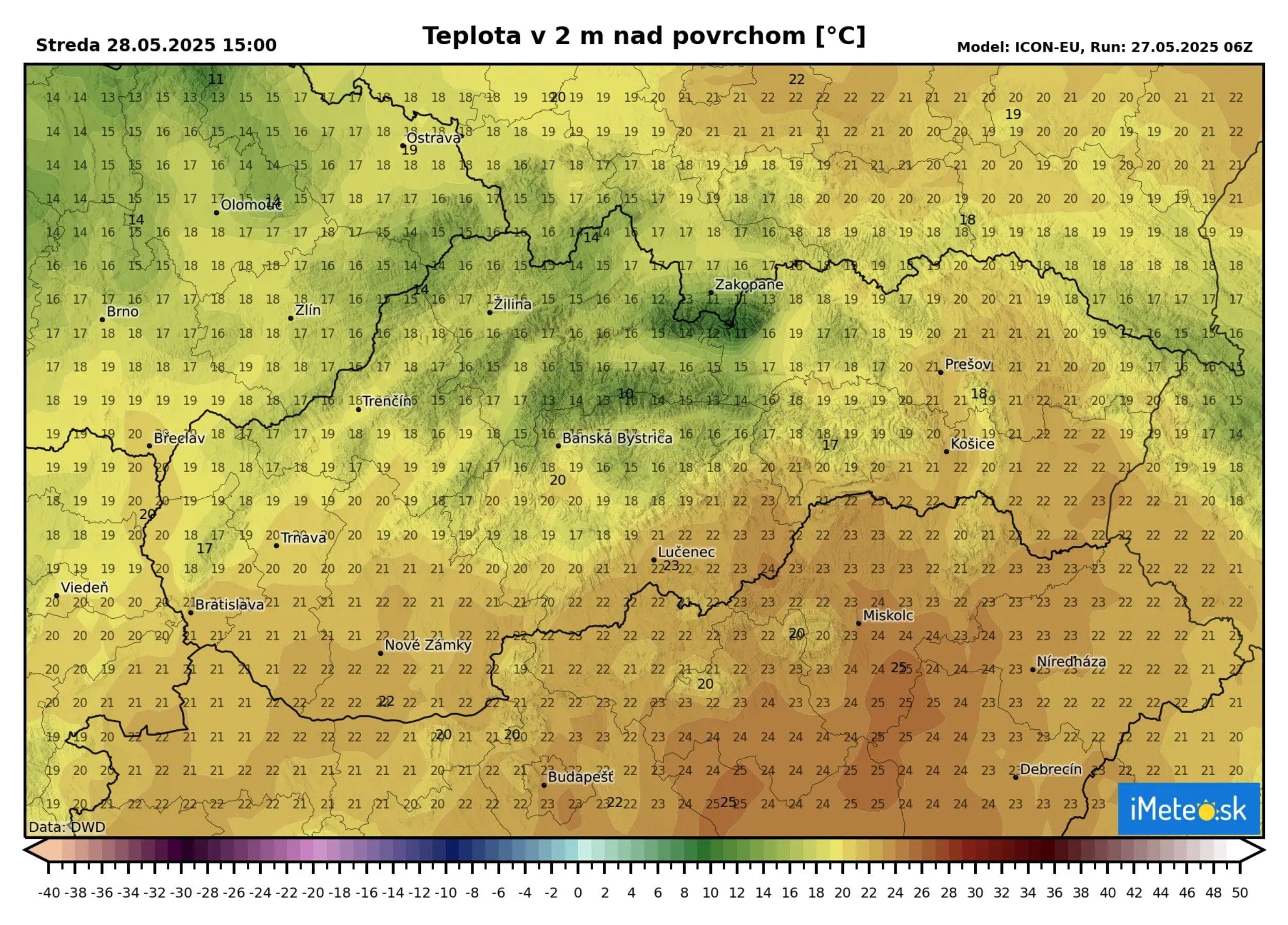 Bude prevažne jasno a slnečno. V Bratislave sa teploty vyšplhajú na +23 °C a napríklad v Košiciach bude zajtra ešte o čosi teplejšie a teploty tu môžu dosiahnuť +24 °C.