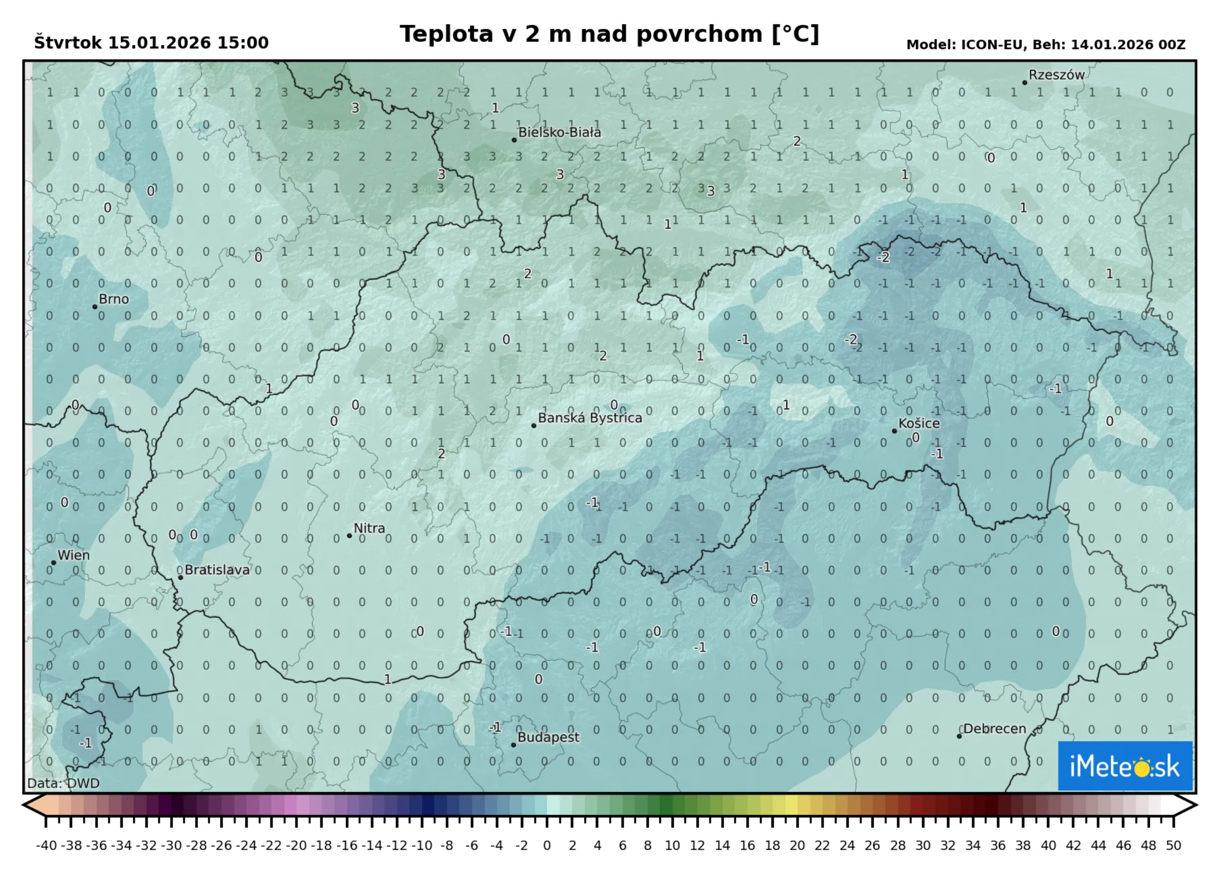 Zajtra sa opäť mierne oteplí, no znova bude najteplejšie s teplotami mierne nad bod mrazu na severe a vo vyššie položených mestách a obciach. Teploty do +3 °C by zajtra mohli vystúpiť v Žilinskom kraji, pod Tatrami či na Spiši, kde lokálne vykukne aj slniečko.