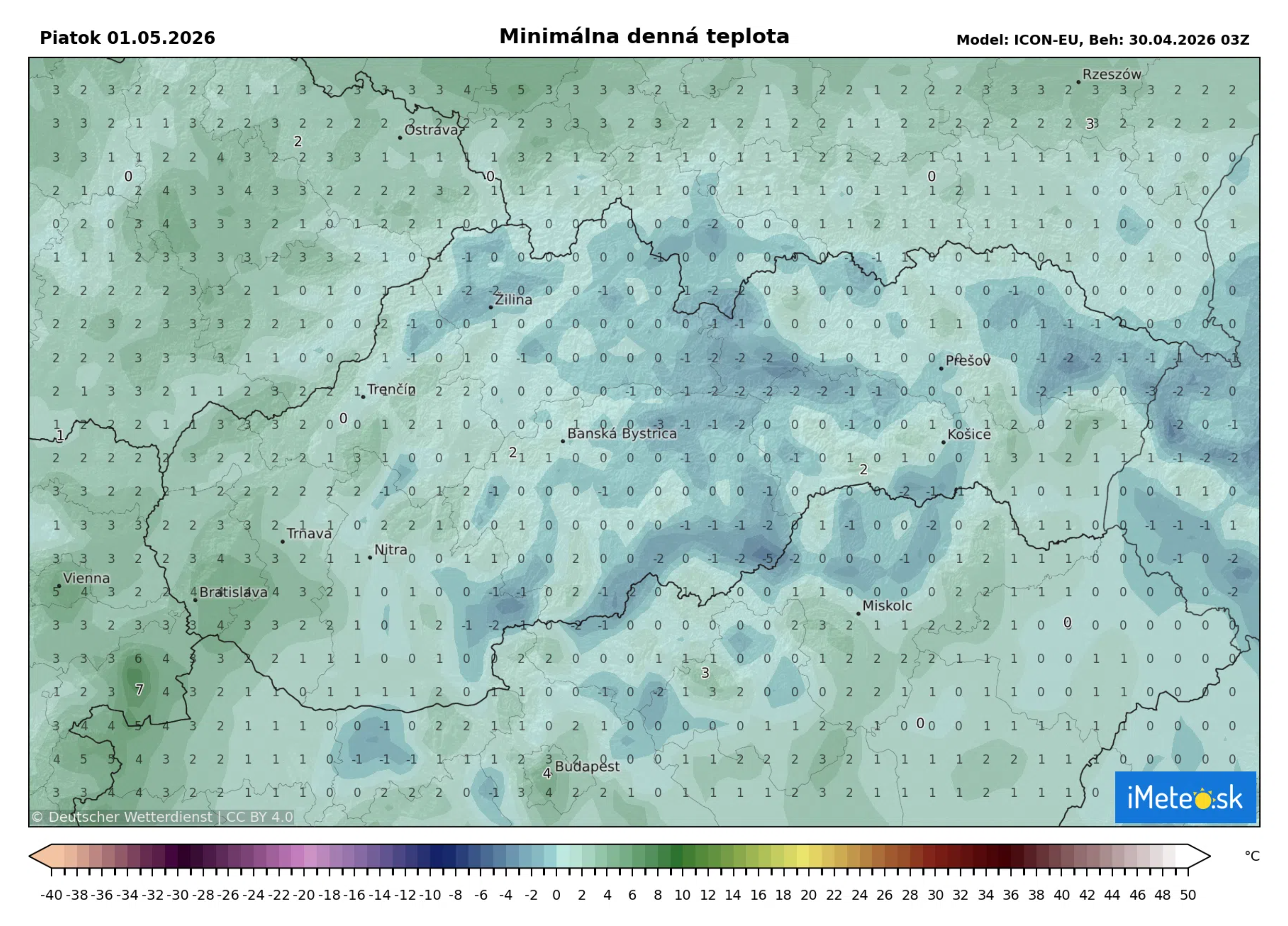 Najnižšie nočné teploty poklesnú na hodnoty od -2 do -7 °C, pričom na západe a juhu Slovenska sa lokálne očakávajú o niečo vyššie minimá v intervale od +4 do -1 °C. V dôsledku vyjasnenia a slabého vetra sa mráz môže vyskytnúť miestami aj v nížinách, čo nie je prelomom apríla a mája nezvyčajné, no napriek tomu ide o situáciu, ktorá si vyžaduje zvýšenú pozornosť najmä zo strany pestovateľov.