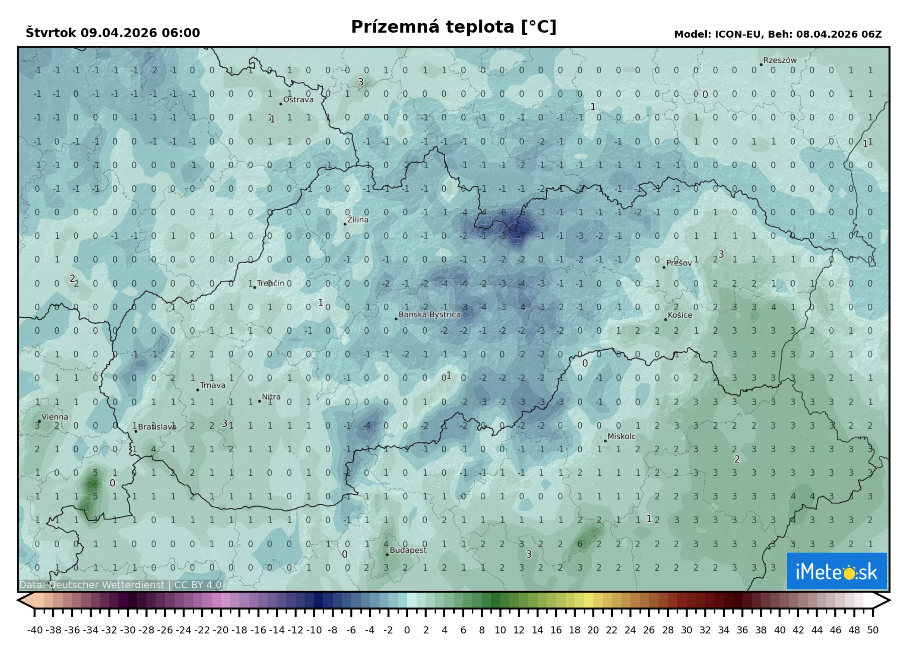 Počasie bude chladné aj počas denného maxima. Najvyššia denná teplota vystúpi väčšinou na +9 až +14 °C, čo je pre začiatok apríla skôr podpriemerná hodnota. V severnej polovici územia a na Dolnom Spiši sa však teploty budú pohybovať väčšinou len od +3 do +8 °C, čo znamená, že v týchto oblastiach bude počasie pripomínať skôr neskorú zimu než jar.