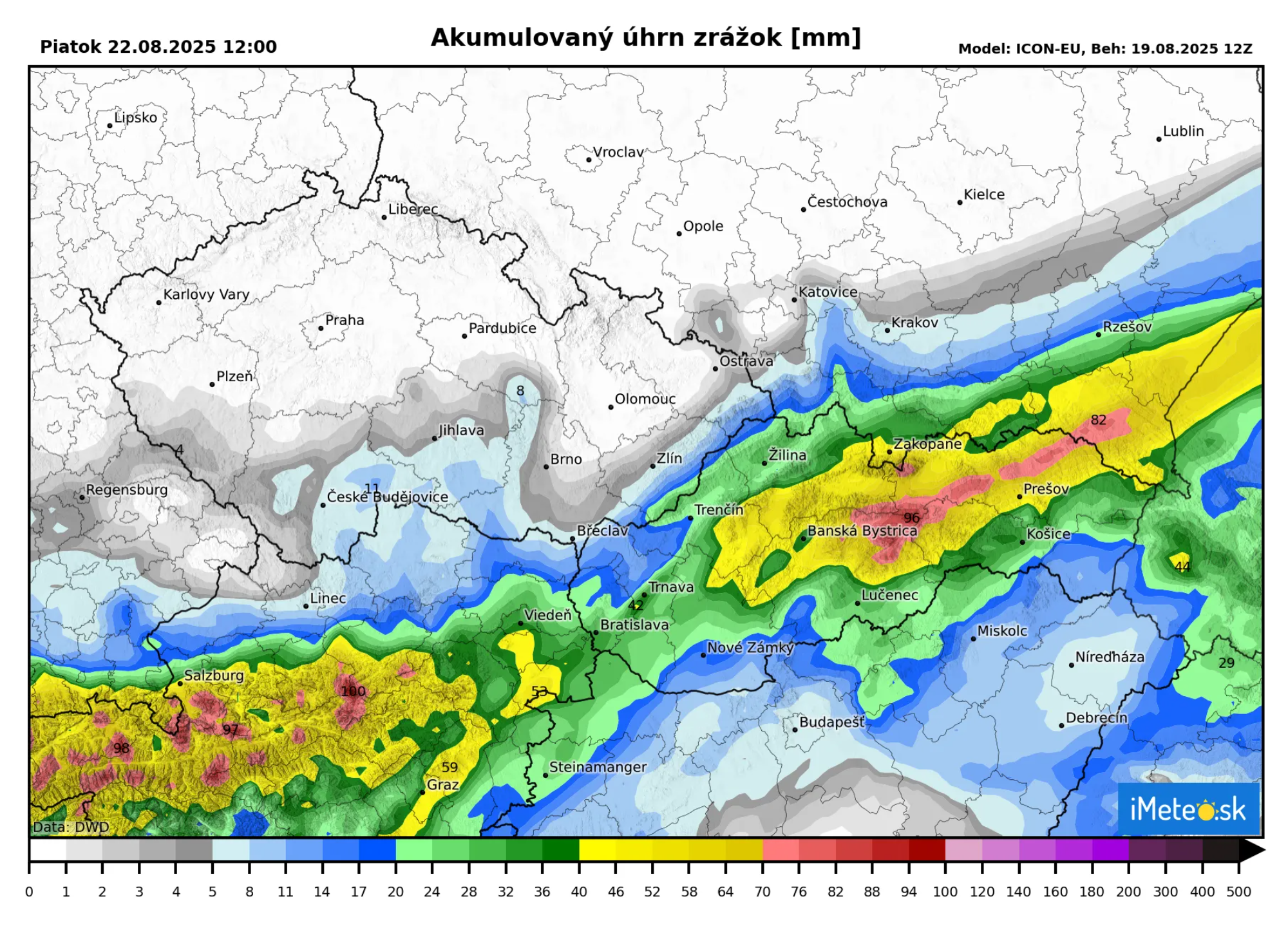 Naše územie bude patriť ku tým najviac zasiahnutým. Spadnúť by počas zajtrajšieho dňa mohlo od 20 do 50 mm zrážok, no v exponovaných oblastiach hôr až okolo 80 mm.