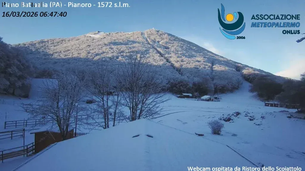 Silné búrky, ktoré včera sužovali tento región, nahradil sneh. Ten vybielil vysoké nadmorské výšky pohoria Madonia.