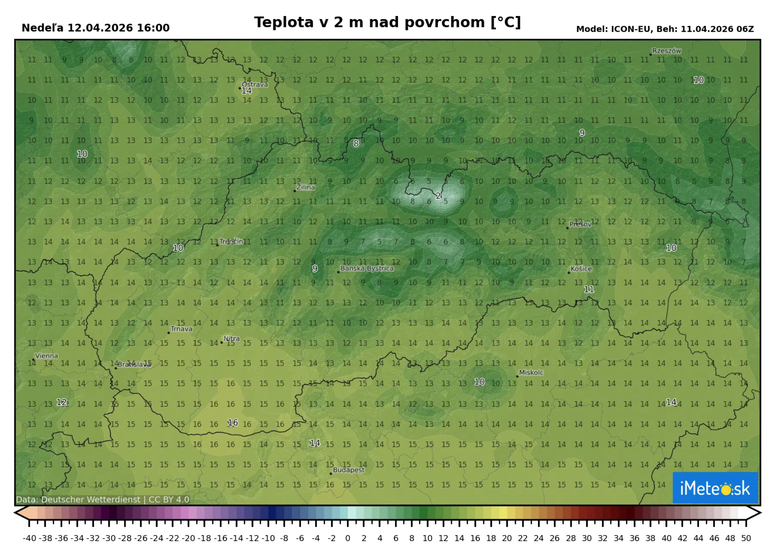Počas dňa nás čaká príjemné jarné počasie s prevládajúcou jasnou až polojasnou oblohou bez zrážok a slabým vetrom, len prechodne sa môže vyskytnúť zväčšená oblačnosť. Maximálne denné teploty sa vyšplhajú na +12 až +17 °C, no severné regióny Slovenska zostanú o niečo chladnejšie.