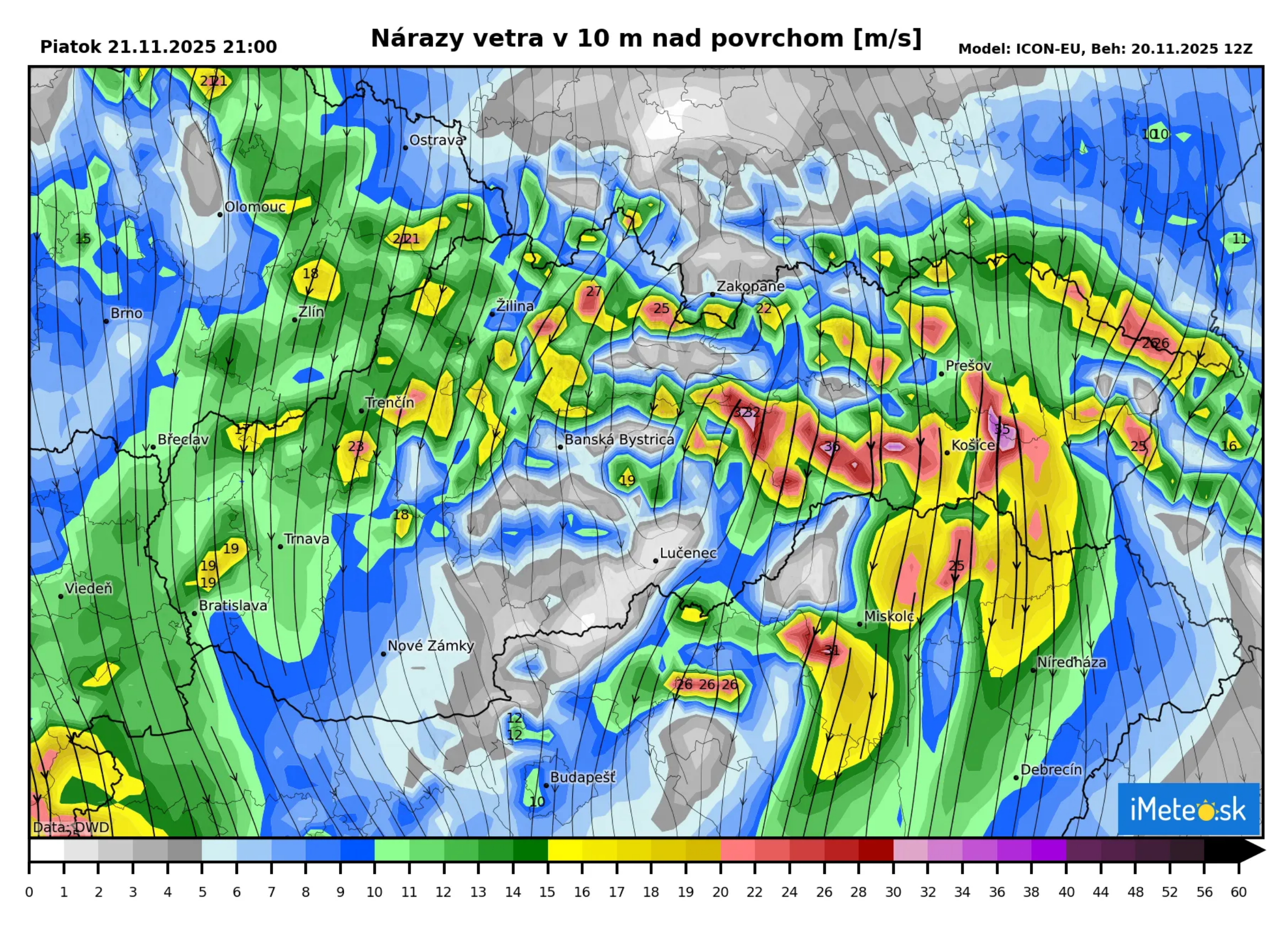 Sneženie tak pre vodičov prinesie snehovú kalamitu, pričom okrem sneženia bude situáciu komplikovať aj silnejúci vietor. Ten bude v piatok dosahovať rýchlosť až 23 m/s, najmä v nížinách na východe Slovenska, ktorý môže páchať materiálne škody menšieho rozsahu, lámať konáre a narúšať distribúciu elektrickej energie.
