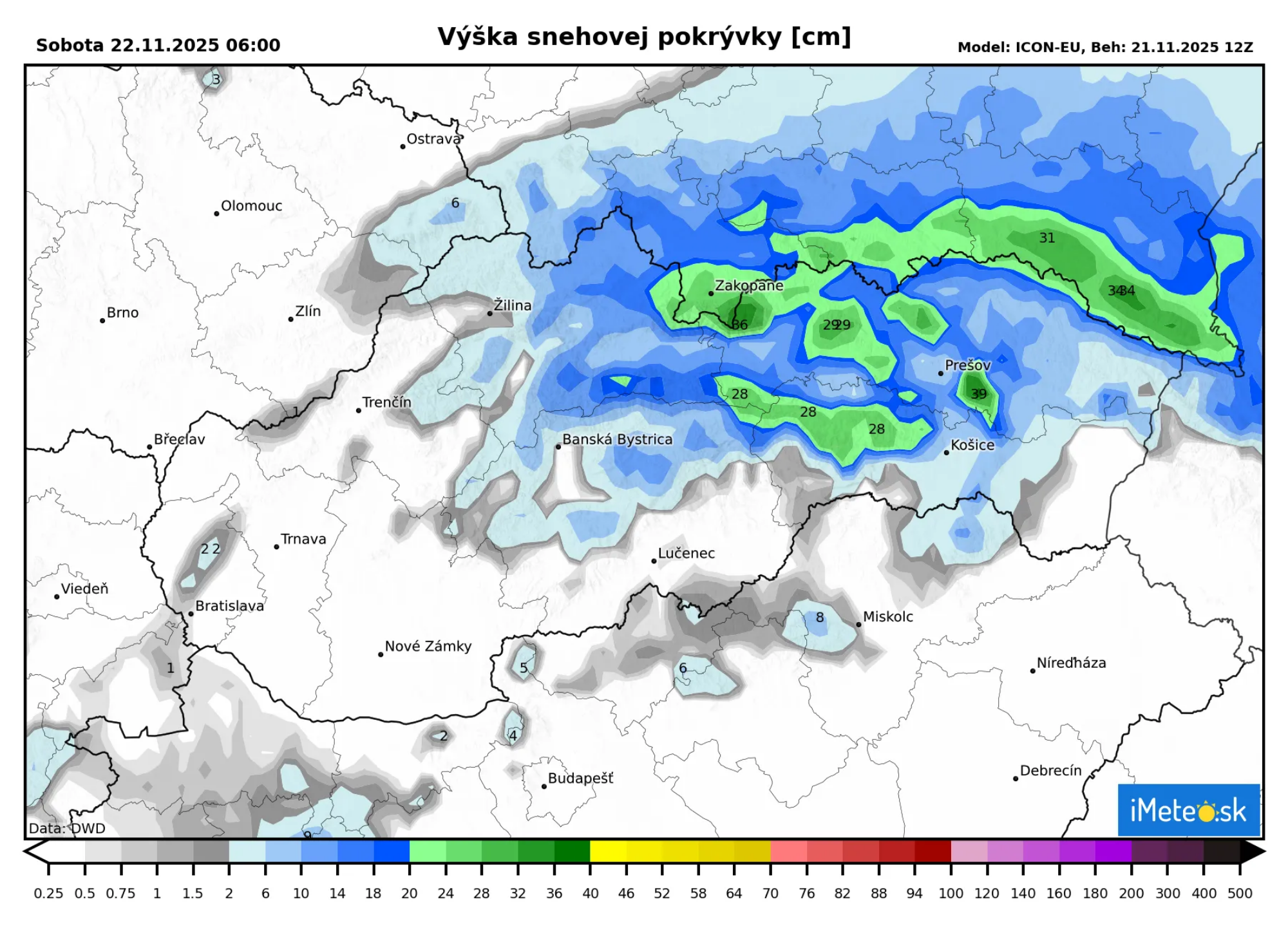 V oblasti východného Slovenska by do zajtrajšieho poludnia malo pripadnúť priemerne okolo 20 cm snehu. V oblasti hôr to však bude až okolo 30 cm.