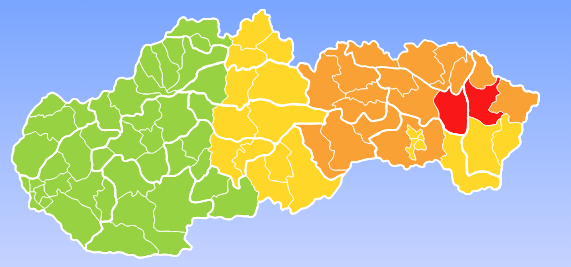 Jednoznačne najhoršia situácia sa očakáva v okresoch Vranov nad Topľou a Humenné, kde by počas nasledujúcich 15 hodín mohlo spadnúť ďalších až 35 cm čerstvého snehu.