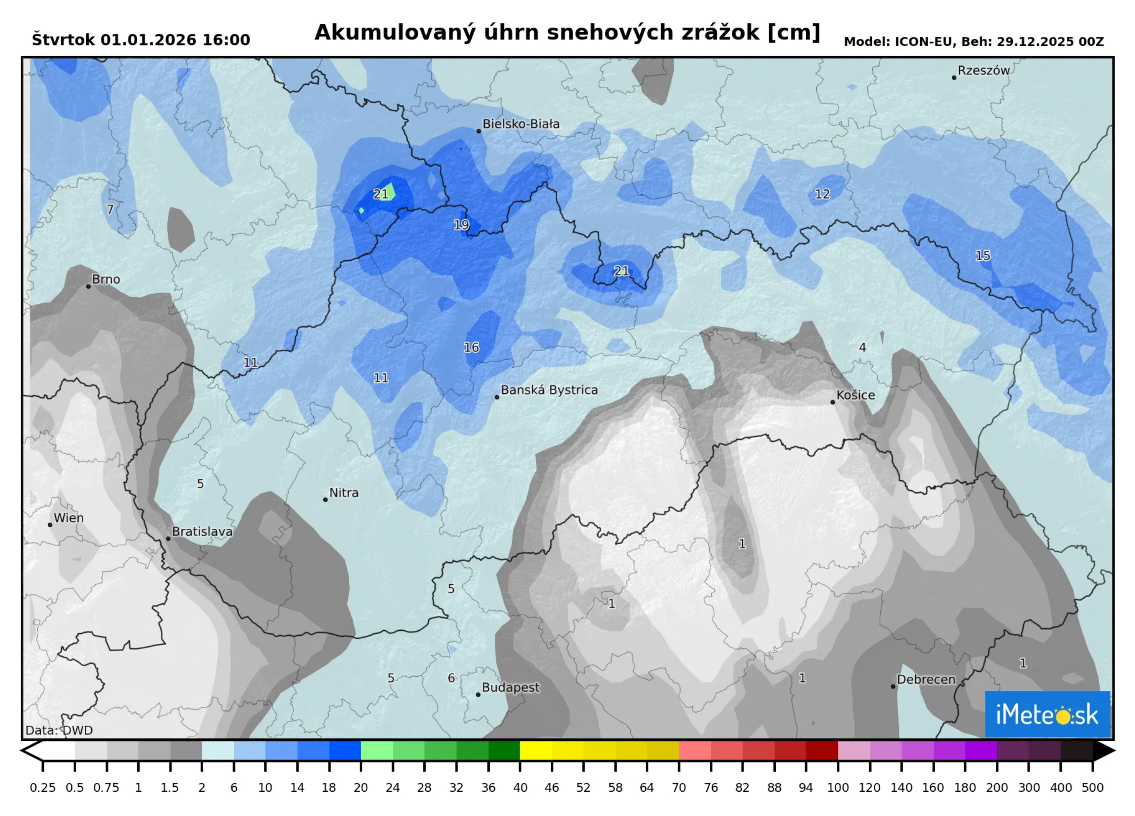 S príchodom Nového roka, príde do Európy aj výrazný studený front, ktorý prinesie ochladenie, ale aj výdatné sneženie. Na Slovensku očakávame ďalšie plošné sneženie, najvýraznejšie v severnej polovici územia.