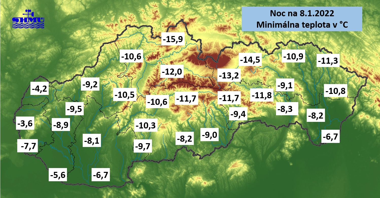 Vráťme sa však do súčasnosti, resp. do noci z piatka na sobotu 8. januára 2022, kedy teplota klesala pod bod mrazu, a to tiež pomerne výrazne. Dialo sa tak vďaka dobrým podmienkam na radiačný pokles teploty.